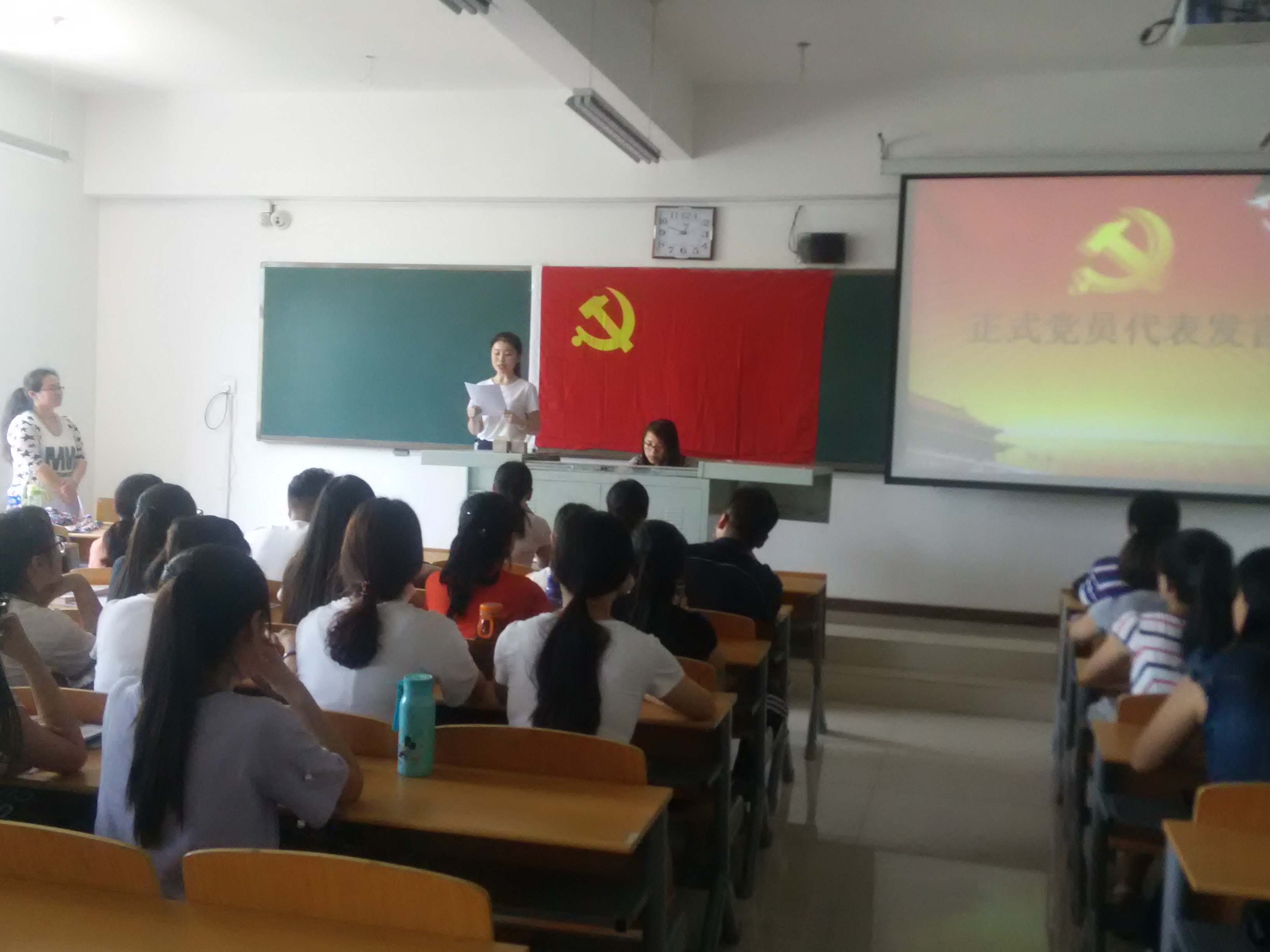 教育法政学部举行预备党员宣誓仪式-缩小 放大+ 2016-06-246月22日,教育法政学部党总支在第六教学楼403室举行了预备党员入党宣誓仪式。学部党员、积极分子及学部总支委员、支部书记近百人参加了此次宣誓仪式。仪式由总支组织委员张娜主持。 大会伊始,张娜老师阐述了入党宣誓的重要意义。接着,会全体起立奏唱雄壮激昂的《国际歌》,之后正式党员龚雪同志带领14名新党员进行入党宣誓,宣誓过程庄严凝重,现场响起阵阵激昂的宣誓声,每个同学都用发自内心的声音抒发对党忠诚的决心,面对着党旗,大家接受了一次身心的特殊洗礼。预备党员代表徐子感谢的党组织长期培养,表达了恪守在党旗下的诺言、对党忠诚、为党和人民尽职尽责、努力使自己成为一名优秀的共产党员的决心和信心。正式党员代表龚雪以一个老党员的身份讲述她对于入党的认识以及对新党员的几点要求和期望,并党员、积极分子发出诚信考试的倡议。从积极分子代表白丹萍的发言中,大家听出了积极分子向党组织靠拢的决心并为之付出的不懈努力。 最后,学部党总支书记周桂英老师讲话,她强调,预备党员参加宣誓仪式就意味着完成了组织上的入党,但还要进一步做到思想上入党,行动上入党,这是一个长期的过程。要牢记自身的党员身份,严格要求自己,体现党员的先锋模范作用,做一名有理想、有抱负,坚持全心全意为人民服务的合格共产党员。 此次宣誓仪式有助于广大学生党员铭记入党誓言,增强党员自豪感、荣誉感,在日后的学习生活中自觉担负起光荣的责任和使命,为党的伟大事业做出应有的贡献。