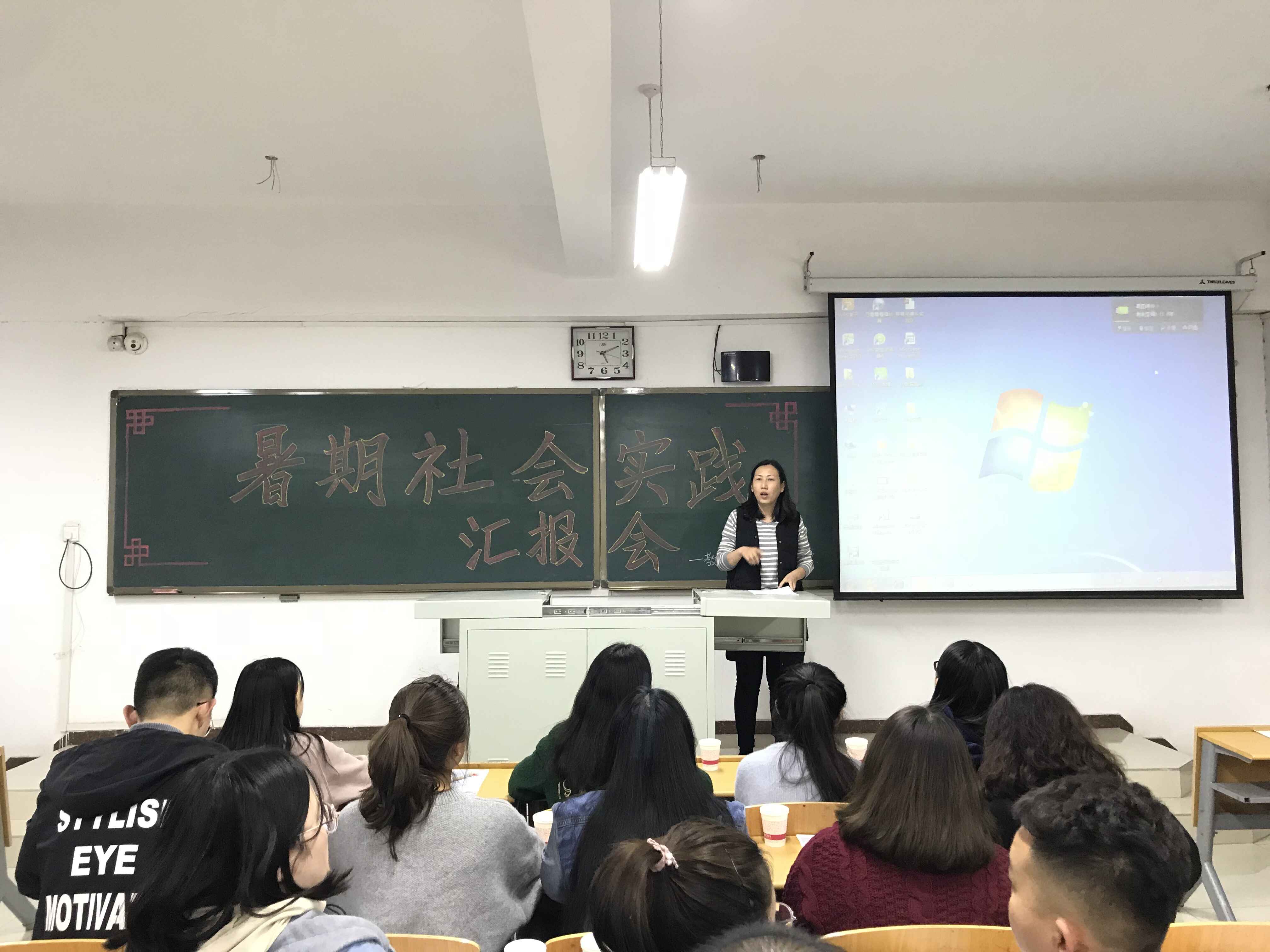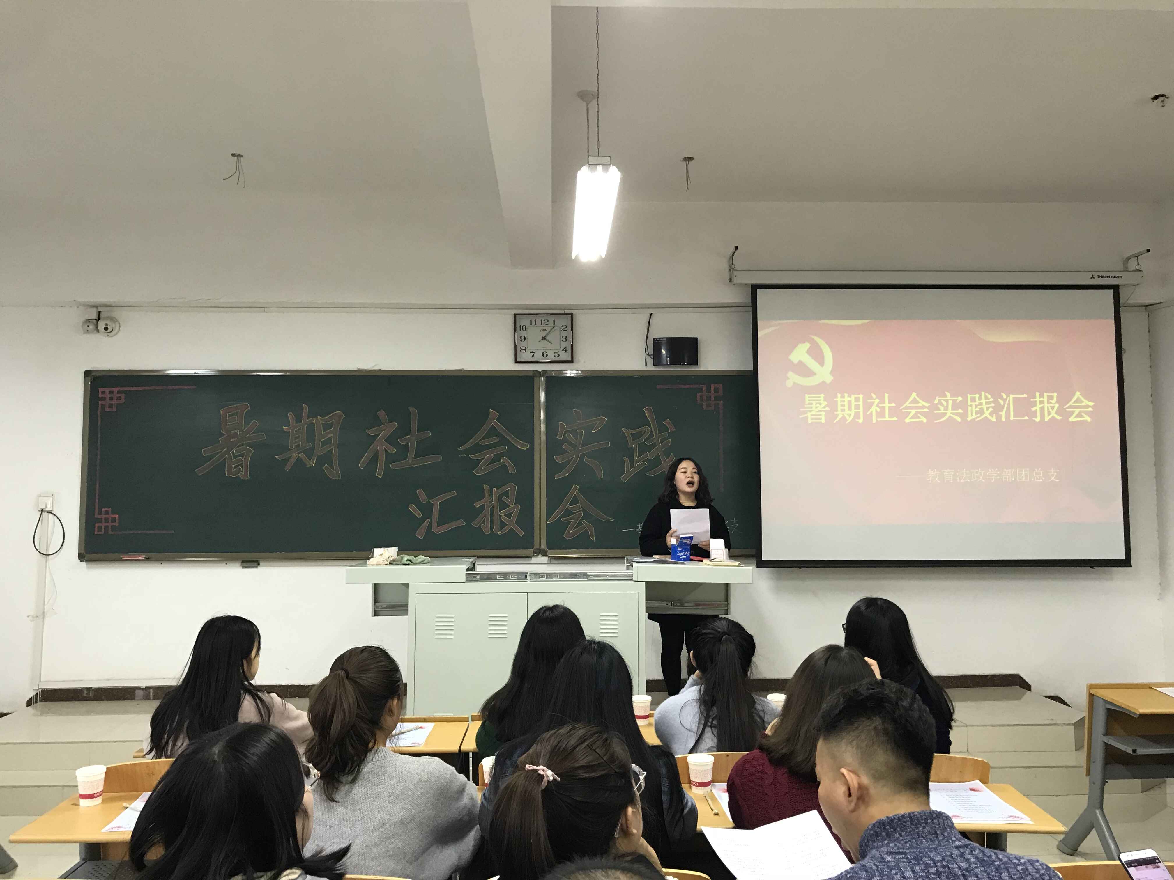 “青春大学习,奋斗新时代”教育法政学部2018年暑期社会实践活动圆满落幕-缩小 放大+ 2018-11-06为深入学习贯彻习近平新时代中国特色社会主义思想和党的十九大精神,进一步增强青年的社会责任感和提高学生的社会竞争力,教育引导广大青年学生争做担当民族复兴大任的时代新人,在切实感受改革开放40年取得的新成就新面貌的生动实践中受教育、长才干、作贡献。11月1日教育法政学部在第六教学楼403教室举办“青春大学习,奋斗新时代”暑期社会实践成果汇报活动,部长周桂英及全体辅导员老师与2018级同学们参加了本次活动。 本次汇报共有9支队伍参加,包括2支集中队,7支同乡队。他们分别在理论宣讲、改革开放40周年调研、省情民生调研、服务乡村振兴、服务基础教育、专业实习实践六个方面介绍他们的实践经历。微爱青年集中队队员结合自身专业优势和特色,与河北省残联脑瘫康复中心联合开展实践活动,他们通过走近残疾人士和康复专家,了解到残疾人士所面临的主要问题;新青年集中队前往承德塞罕坝进行调研活动,感受塞罕坝精神,为提高当地村民的知识素养开展建设美丽乡村理论宣讲活动,同时奔赴爱国主义教育基地,开展党史学习、红色教育、实践锻炼活动,传承革命先烈的崇高品质和爱国情怀,充分利用学习教育基地,积极地将理论知识应用于社会实践中;青年志愿服务协会同乡队秉承着“奉献、友爱、互助、进步”的志愿宗旨,前往石家庄火车站对广大群众进行普法宣传活动,为旅客提供力所能及的帮助。活动过程中,实践队员将自己在实践过程中所闻所见所感通过真挚的语言为在场师生介绍,一个个鲜活的事例都是对大学生暑期社会实践辛勤汗水的证明。最后,部长周桂英鼓励青年学生积极接触社会、感受社会,在实践过程中锻炼意志、开拓视野。她希望2018级新生接过教育法政的青春之火,坚定艰苦奋斗、成长成才的理想信念,做志存高远、德才并重、情理兼修、勇于开拓的优秀青年,为实现中华民族的伟大复兴贡献自己的智慧与力量。