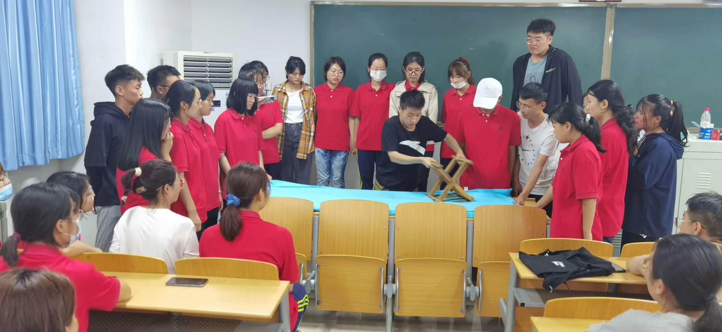 规范叠被,充实生活——学部开展了新生内务整理之 “叠军被”活动-缩小 放大+ 2020-09-22为引导学生养成良好的生活习惯,营造整洁舒适的生活环境,教育法政学部于9月21日晚7:00在第六教学楼新生自习室开展了“叠军被”活动。活动中退役的学长、学姐为2020级的同学们讲解并演示怎样把被子叠成“豆腐块”,大家纷纷围在讲台仔细观看,认真学习,并在讲解之后的时间里自己练习叠好被子。