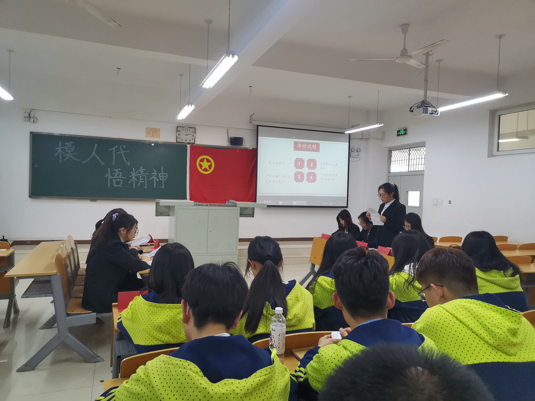 2019级思想政治教育举办模拟人民代表大会活动-缩小 放大+ 2021-04-19为加强同学们对两会的了解,丰富同学们的政治生活,帮助同学们体会人民代表大会的议程,深入了解我国国情,4月14日,2019级思想政治教育专业一班团支部结合自身专业特色在第六教学楼403教室举办了以“学习贯彻人代会,继往开来谱新篇”为主题的模拟人民代表大会活动。 会议伊始,主持人宣读模拟人代会相关内容及要求,宣布此次模拟人代会正式拉开帷幕。随后,各宿舍根据自己所代表的阶层,按照抽签结果依次展示自己准备充分的议案,对议题的想法进行陈述,提出观点和方案。同学们的议案涵盖了政治、经济、文化、社会等各个方面,用大学生新颖、独到的视角对社会问题进行深刻解读。 其中,611宿舍所代表的企业经营阶层就“解决民营企业融资难、融资贵问题”为议题进行展示,提出了完善企业制度,健全治理结构,适应市场发展需要,改革经营管理体制和运作模式的建议;623宿舍所代表的退休阶层就“关于倡导社会关注退休人群的心理健康”为议题,提出大力普及老年人心理健康教育,建立和完善社区老年心理健康促进工作网络的建议。发言代表们精彩的论述将全场的氛围推向高潮。随后,“记者团”结合各项议案的具体问题向相关阶层进行提问,一问一答中,体现出同学们对事关失业人员就业、生态环境保护和心理健康问题都有自己深入的思考和独特的见解。同学们在陈述议案的同时,“人大代表”在认真聆听并做好记录,投出自己神圣的一票。最后,615宿舍所代表的大学生阶层就关于“大学生心理问题”议案以全场高票胜出,成为最佳议案。在同学们的阵阵掌声中,此次活动圆满结束。