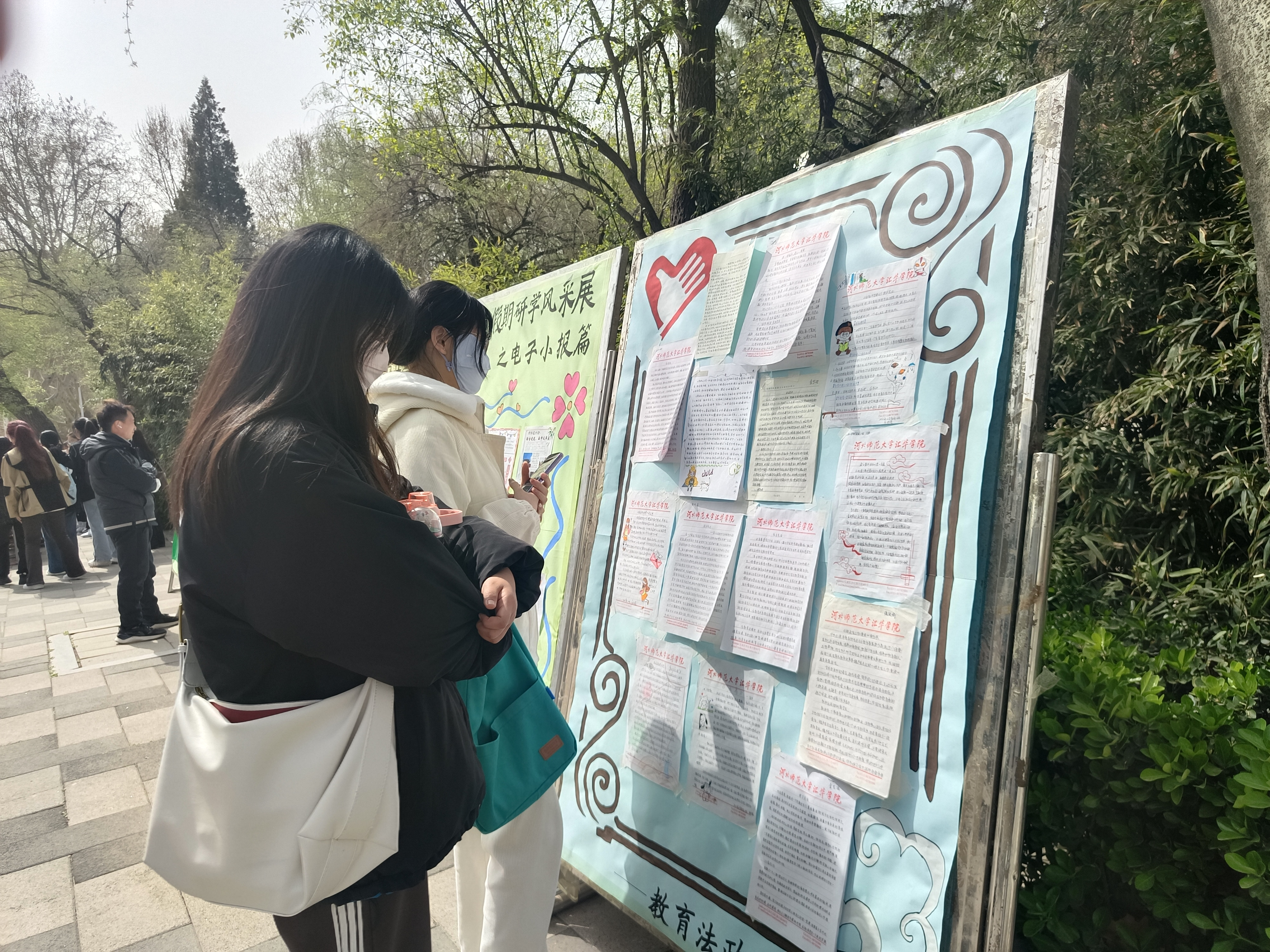 砥砺研学长才能,教法学子展风采 ——教育法政学部举办寒假研学成果展-缩小 放大+ 2023-04-063月23日至24日,教育法政学部学在第六教学楼东侧甬路、食堂西广场举办“假期研学”风采展览活动。 根据学院《william威廉中文官网大学生假期学业能力提升计划实施方案》要求,引导大学生进一步巩固专业知识,锻炼专业技能,教育法政学部认真谋划,制定学部寒期学业能力提升计划实施方案,内容涉及专业知识巩固、师范类专业技能训练、读书活动等十个方面,此次展示是对假期部分优秀成果的展示。