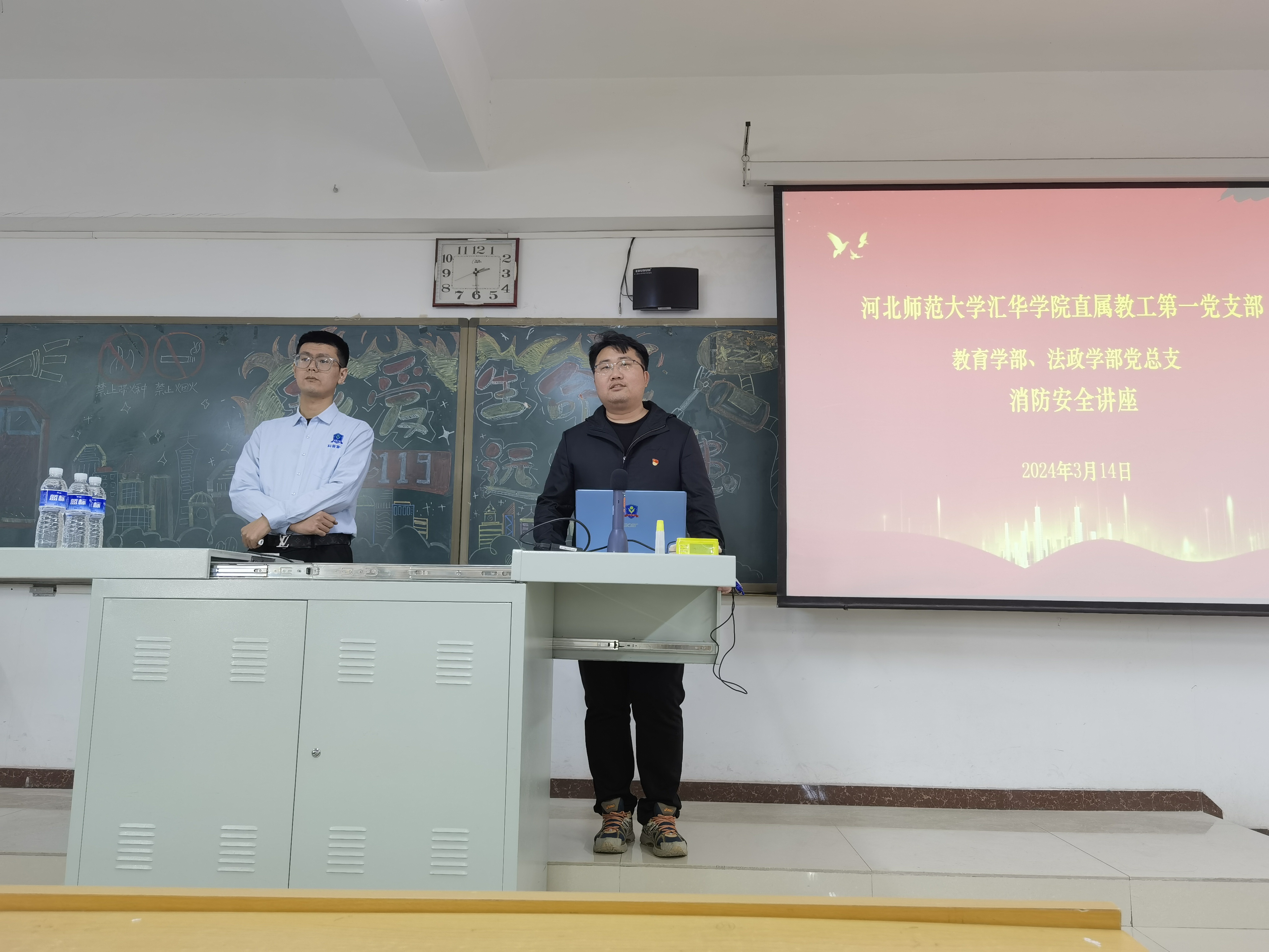 法政学部开展“珍爱生命,远离火患”主题党日活动-缩小 放大+ 2024-03-28为吸取火灾事故教训,加强消防安全教育,不断提高全体师生消防安全意识和素质,3月14日,法政学部党总支联合安全工作处在第六教学楼403教室举办了以“珍爱生命,远离火患”为主题的消防主题党日活动。此次活动特别邀请了河北省应急管理与安全生产协会应急消防分会的杜嘉乐教官担任主讲嘉宾,法政学部全体党员师生共同到场参加。
