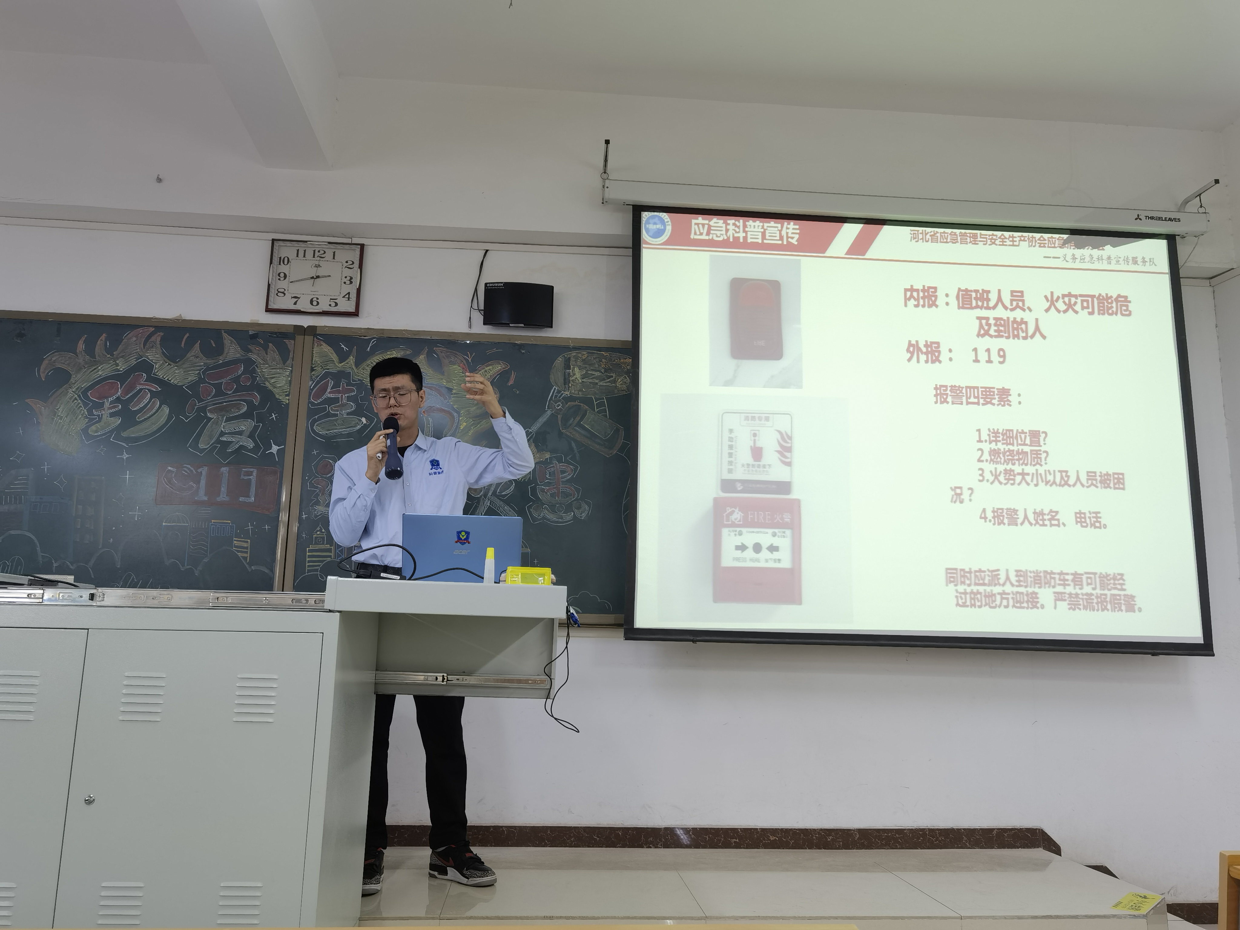 在活动中,杜嘉乐教官以丰富的专业知识和实践经验,为大家详细讲解了消防安全制度及各类火灾案例,让党员们深切意识到学习消防知识,保护生命安全的重要性。杜教官还强调大家要树立公共消防意识,预防、杜绝可能引起消防事故的内外隐患,并介绍了个人面对突发火灾事故时进行救灾及逃生的正确做法,提醒大家遇到火灾要大声呼喊求救,及时拨打119火警电话,保持冷静,安全逃离等。