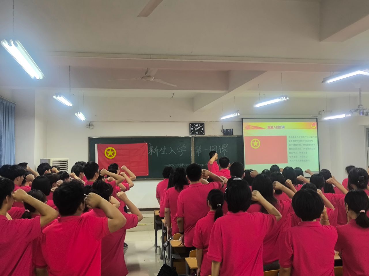 第二部分,举行团支部成立仪式、奏唱团歌、重温入团誓词。穿云九重,听风万里,华夏儿女,自立自强。歌声如潮,青春的歌喉雄浑嘹亮,红色漫漫,青春的心灵激动澎湃。团歌是共青团的组织象征,它不仅是一首歌曲,更是一种精神,凝聚了团员的青春和力量,激励他们为实现中华民族伟大复兴和社会主义现代化建设贡献自己的青春活力。青春与时代同频,2024级法学专业一班的学子们,心怀赤诚,用歌声与誓词点亮理想青春,激昂奋斗旋律,心中永存红色,让党的精神,让新时代中国特色社会主义思想贯彻到底。