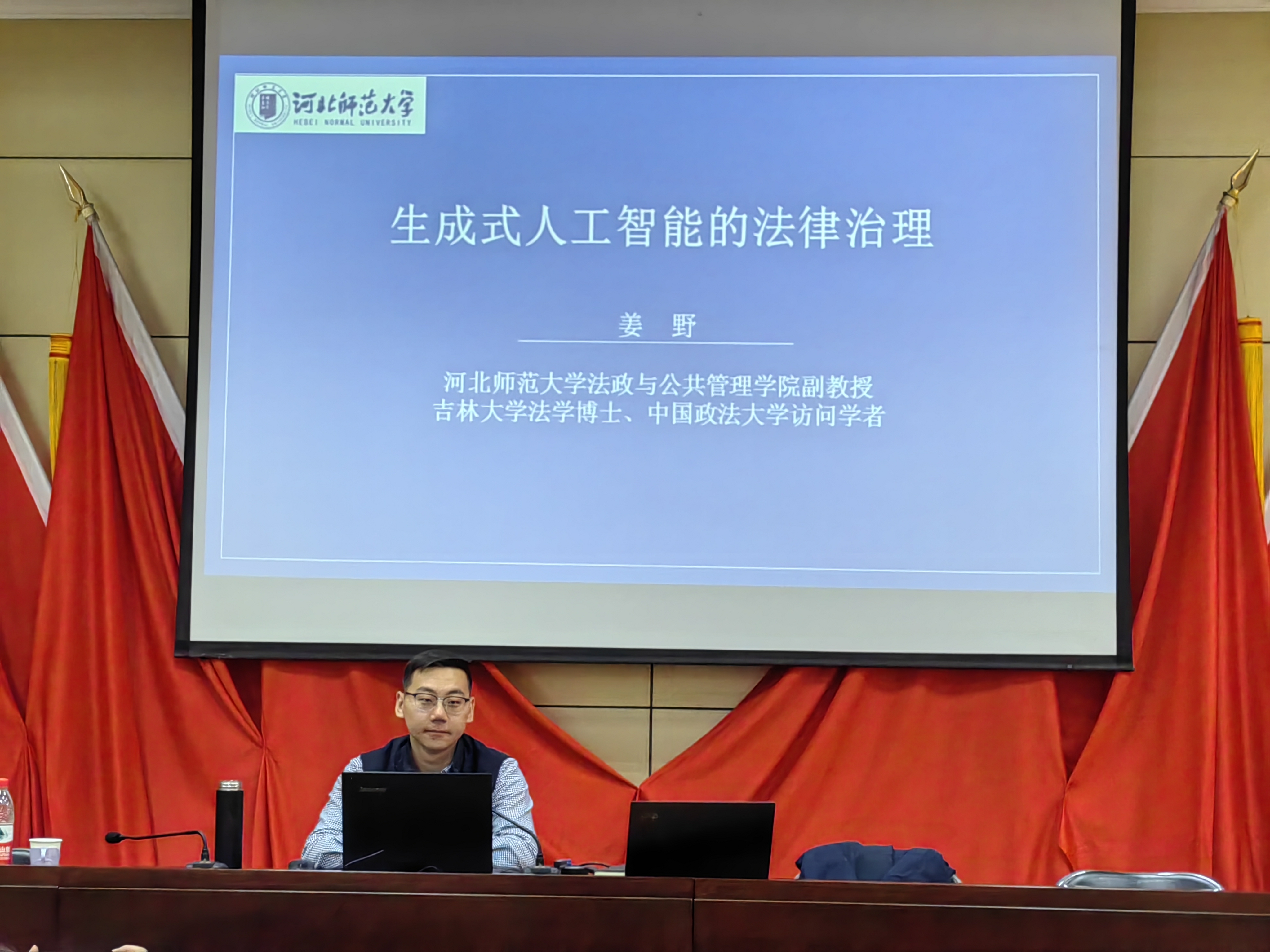 法政学部举办“生成式人工智能的法律治理”专题讲座-缩小 放大+ 2025-03-173月12日上午,法政学部在图书馆一楼报告厅成功举办了题为“生成式人工智能的法律治理”的专题讲座。本次讲座由william威廉中文官网法政与公共管理学院法学系主任、副教授姜野主讲,2023级法学专业全体同学及相关老师参加。
