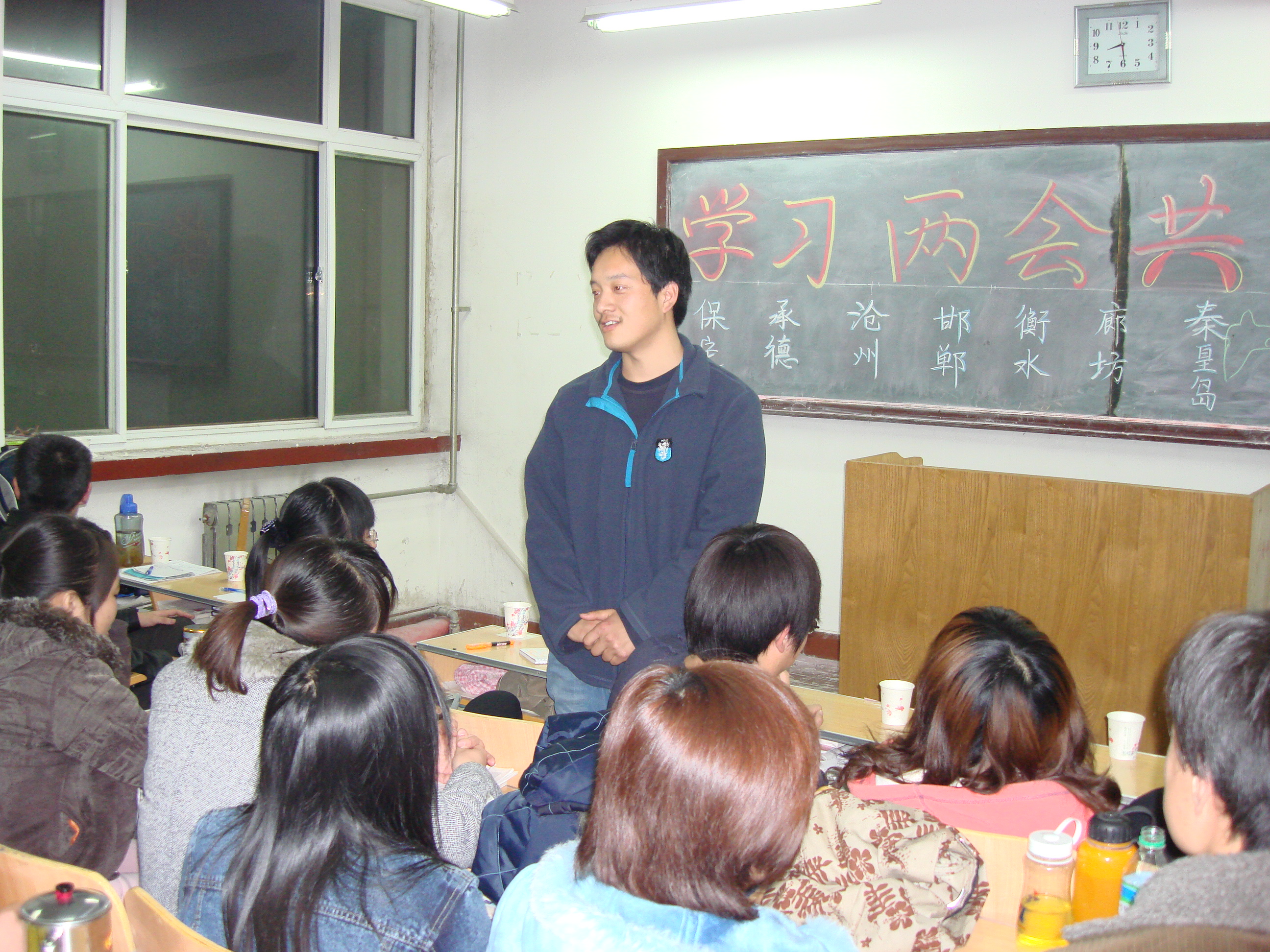 2.思想政治教育专业——模拟课堂 2005年11月8日,思想政治教育专业2003级学生在南院第一教学楼203教室首次举办了以“树立职业意识,提高职业技能”为主旨的模拟课堂展示活动。模拟课堂训练活动一般由即兴演讲、板书设计、 时政论坛、教材分析、课堂技能等多个版块组成,并可根据每届学生的兴趣、特点来拓展新的领域,增加新的内容。模拟课堂活动作为思想政治教育专业顶岗实习培训和职业技能训练的重要组成部分,对提高学生教师素质和从教能力起到积极有效的作用。