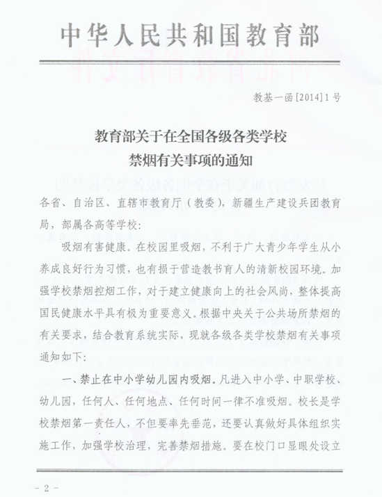 关于转发河北省教育厅《转发教育部关于在全国各级各类学校禁烟有关事项的通知》的通知