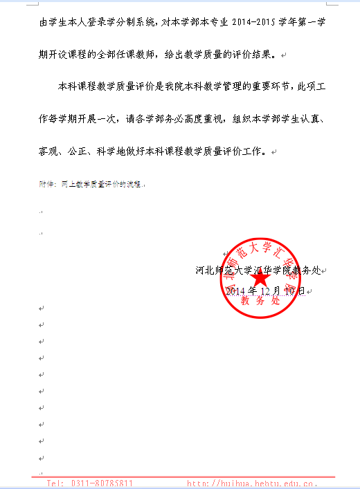 关于做好2014-2015学年第一学期本科教学质量评价工作的通知