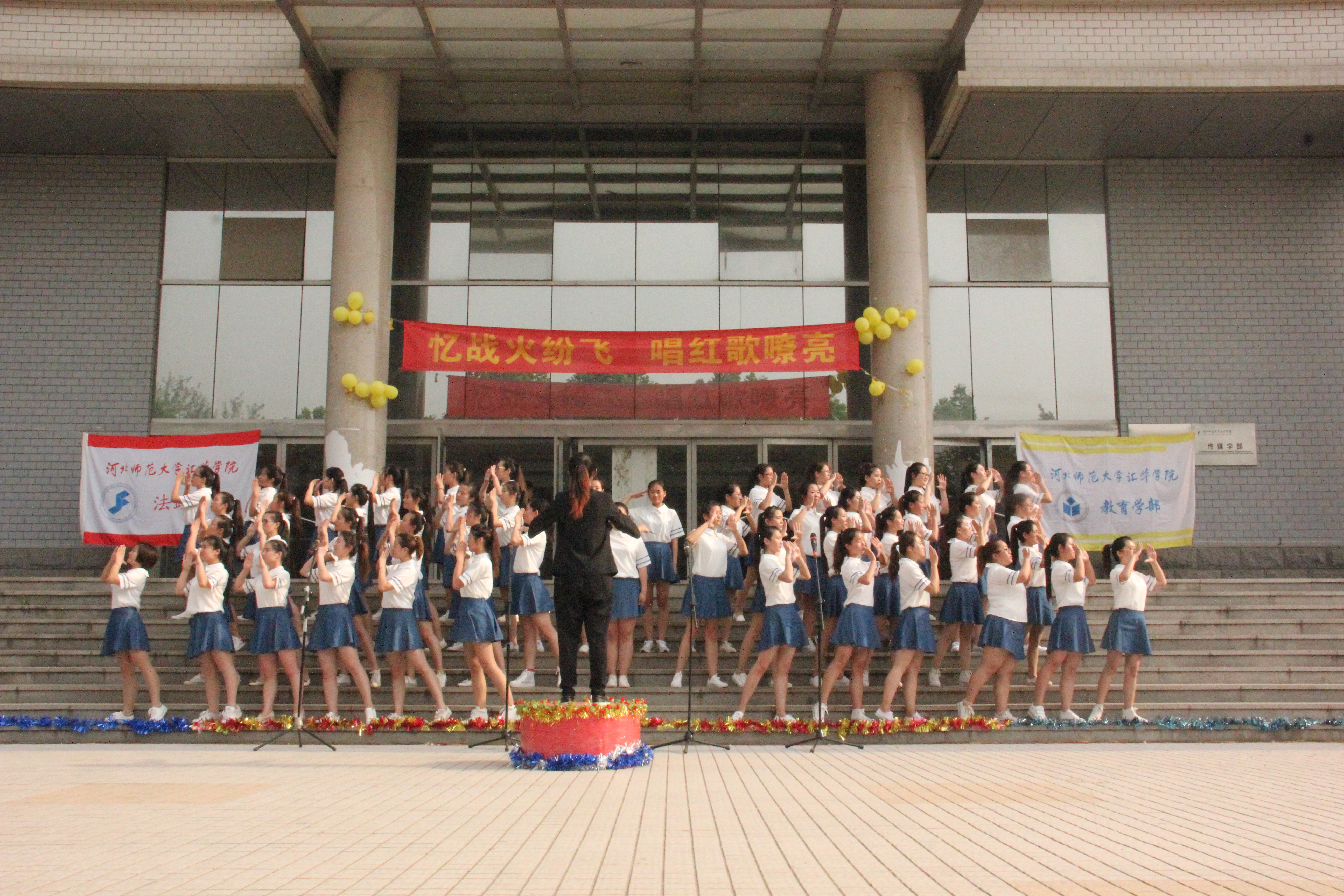 教育法政学部“忆战火纷飞 唱红歌嘹亮”合唱比赛圆满落幕-缩小 放大+ 2015-05-20“红星闪闪放光彩 ,红星灿灿暖胸怀 ,红星是咱工农的心 ,党的光辉照万代”美妙悠扬的歌声久久回荡在校园。5月17日下午,教育法政学部在第三实验楼前广场举办了以“忆战火纷飞 唱红歌嘹亮”为主题的合唱比赛,学部师生欢聚一堂,来自2013和2014及的全体学生以饱满的精神、澎湃的激情为大家献上了一曲曲震撼人心的经典歌曲。学部部长周桂英、副部长张娜、副部长王瑜出席活动现场,全体辅导员老师观看了比赛。 本次比赛以班级为单位进行,来自大一大二的六个专业十四个班级按照抽签顺序依次登台,歌声嘹亮悦耳,振奋人心,队形变换利落齐整,有的班级将队伍排列成专业名称的缩写字母,有的班级用服装搭配成五星红旗,有的班级用精心制作的手工摆成星海,有的班级用张开的双臂呈现出青春的火焰,此外,大家还别出心裁的将武术、手语、舞蹈、朗诵、电子琴、双截棍等创意元素加入到合唱中,将《打靶归来》《呼儿嘿呦》《红星闪闪》《团结就是力量》《没有共产党就没有新中国》等一首首脍炙人口的歌曲用自己的方式重新表现出来,整场比赛同学们始终以最高昂的姿态向在场观众展示各自的风采,由全体师生合唱的《歌唱祖国》将整场活动推向高潮。最终,13级学前专业二班以优异的表现获得本次比赛的第一名。 本次活动是纪念世界反法西斯战争胜利暨中国抗日战争胜利70周年的重要组成部分,由学部团总支负责筹备安排,大一大二全体学生在一个多月的时间里,每天利用早、中、晚休息时间认真排练。活动的举办,充分调动了广大在校学生的热情,在排练和比赛的过程中,让大家深刻体会到了和平年代的来之不易,用合唱的形式歌颂了中国共产党开创祖国的伟大功绩,表达了当代青年对党的伟大事业和光辉历程的敬佩和赞扬之情。相信在这种热爱祖国、建设国家、不畏艰难、发奋图强的精神鼓舞下,william学子一定能够不断迎接挑战,取得更好的成绩。
