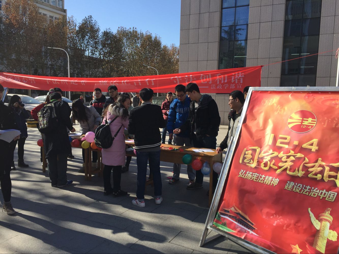 法政学部第一党支部举办宪法日主题宣传活动-缩小 放大+ 2015-12-0712月4日 ,法政学部第一党支部在六教以及北院食堂东门举办了以“提高法律知识、增强法制观念”为主题法制宣传活动。 支部党员及积极分子在经过充分的准备之后,12月4日早自习对学部二年级学生开展了以宪法为主题的法治宣传,向同学们具体的讲解了依法治国的重要意义、依宪治国的必要性以及人身权益的保护问题。中午十一点至下午一点于,法学专业学生在北院餐饮中心东广场开展普法宣传,向过往学生分发法律调查问卷和法律常识宣传单,宣传宪法精神,普及法律知识。活动中,同学们还针对当前william学生实际,就大学生在就业和兼职过程中常遇到的法律问题接受咨询并解答。 本次活动有利于弘扬了宪法精神,积极教育引导william大学生牢固树立宪法意识、增强宪法观念的作用,有助于大学生自觉履行维护宪法尊严、保障宪法实施的职责。并且希望通过这次活动,推进法制宣传教育,增强学生的法律意识和法制观念,提高大学生的法律知识水平和权益保护意识。