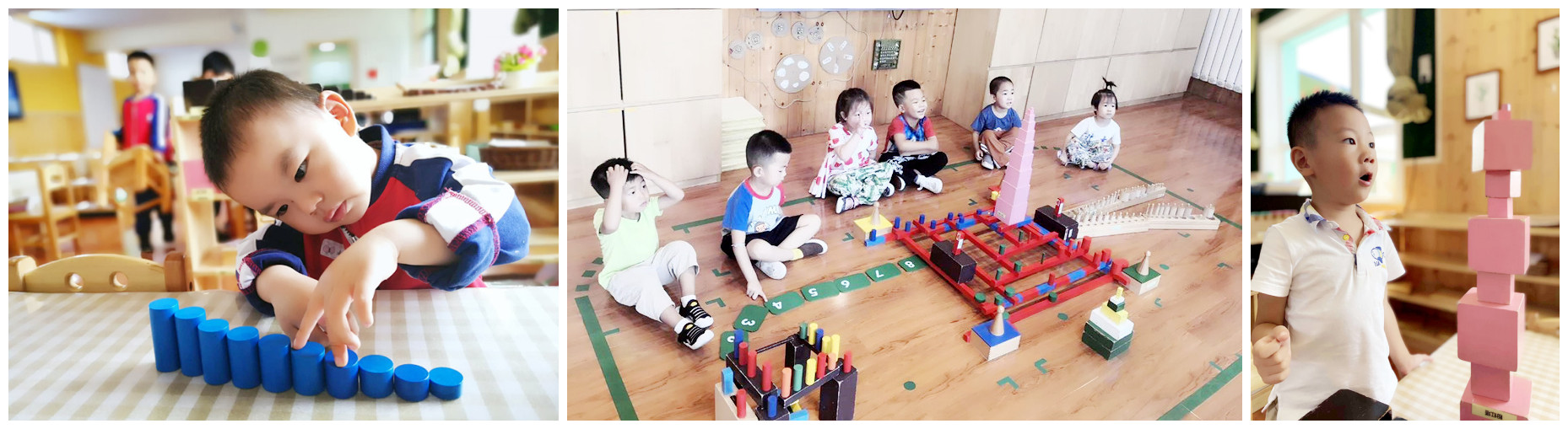 在有些人眼中理解的数学无非就是算术,那算术又无非就是加减乘除。其实,这些只是数学的一小部分而已,而蒙氏数学不是纯给孩子灌输数学的概念,它是协助孩子从无意识中发现数学关系的过程。当数字与物体对应起来时,才是真正理解了数学的概念。