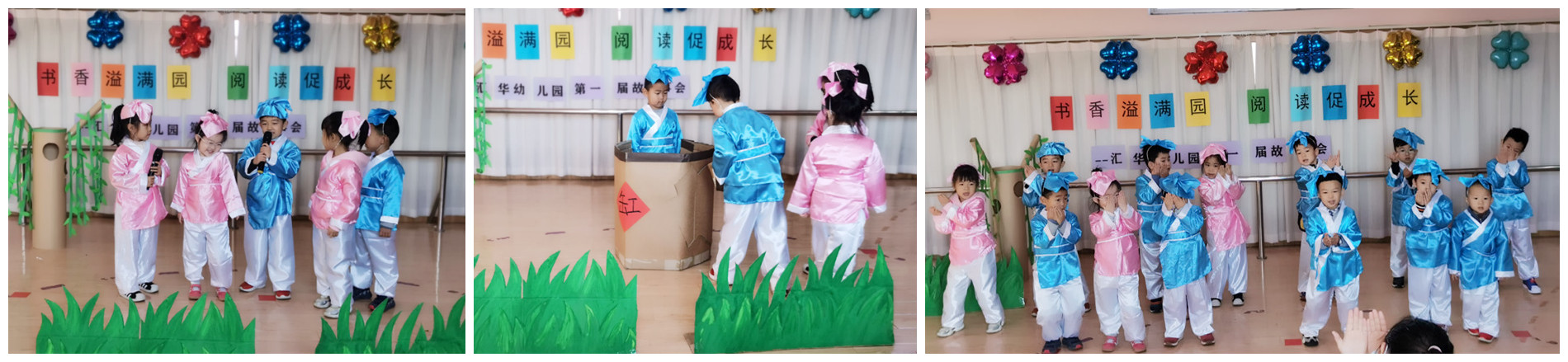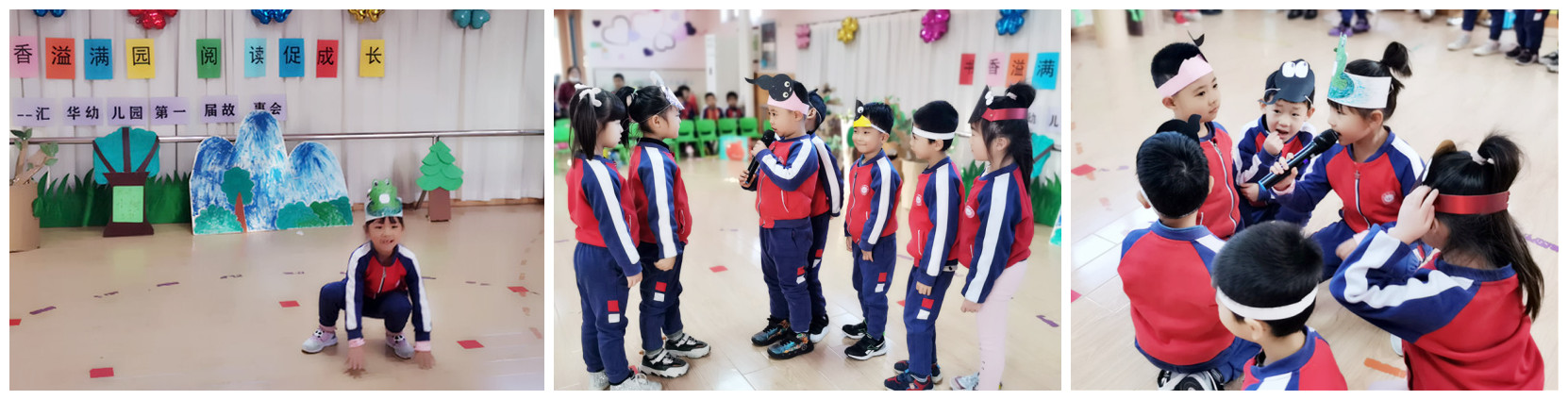 汇华小萌娃们变身故事大王,或说、或唱、或跳……把书中的故事逮到了小舞台上……