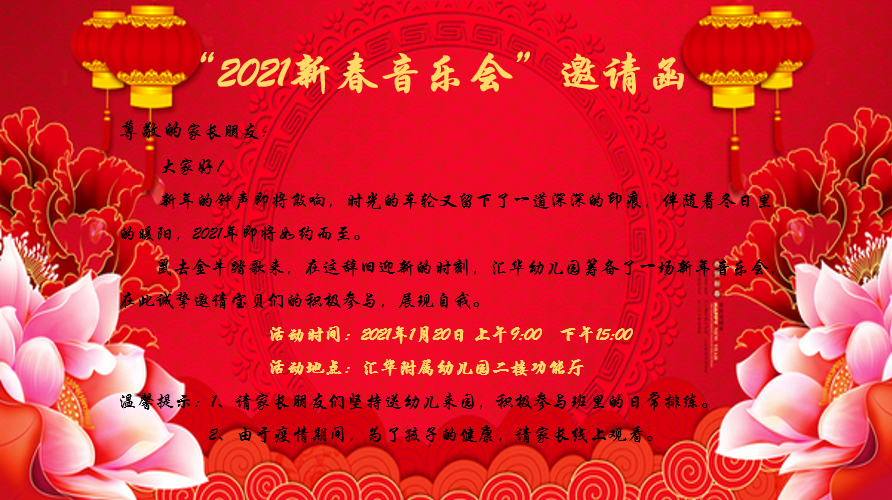 【汇华幼儿园】“2021年新春音乐会”邀请函