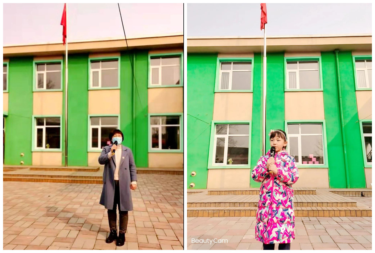 园长朱金玲、果果二班许悦暄纷纷在典礼上进行了开学致辞和发言
