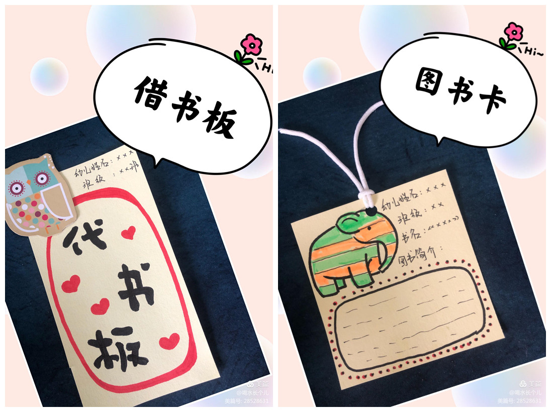 书名、图书简介、幼儿姓名和班级等信息,将图书卡夹在