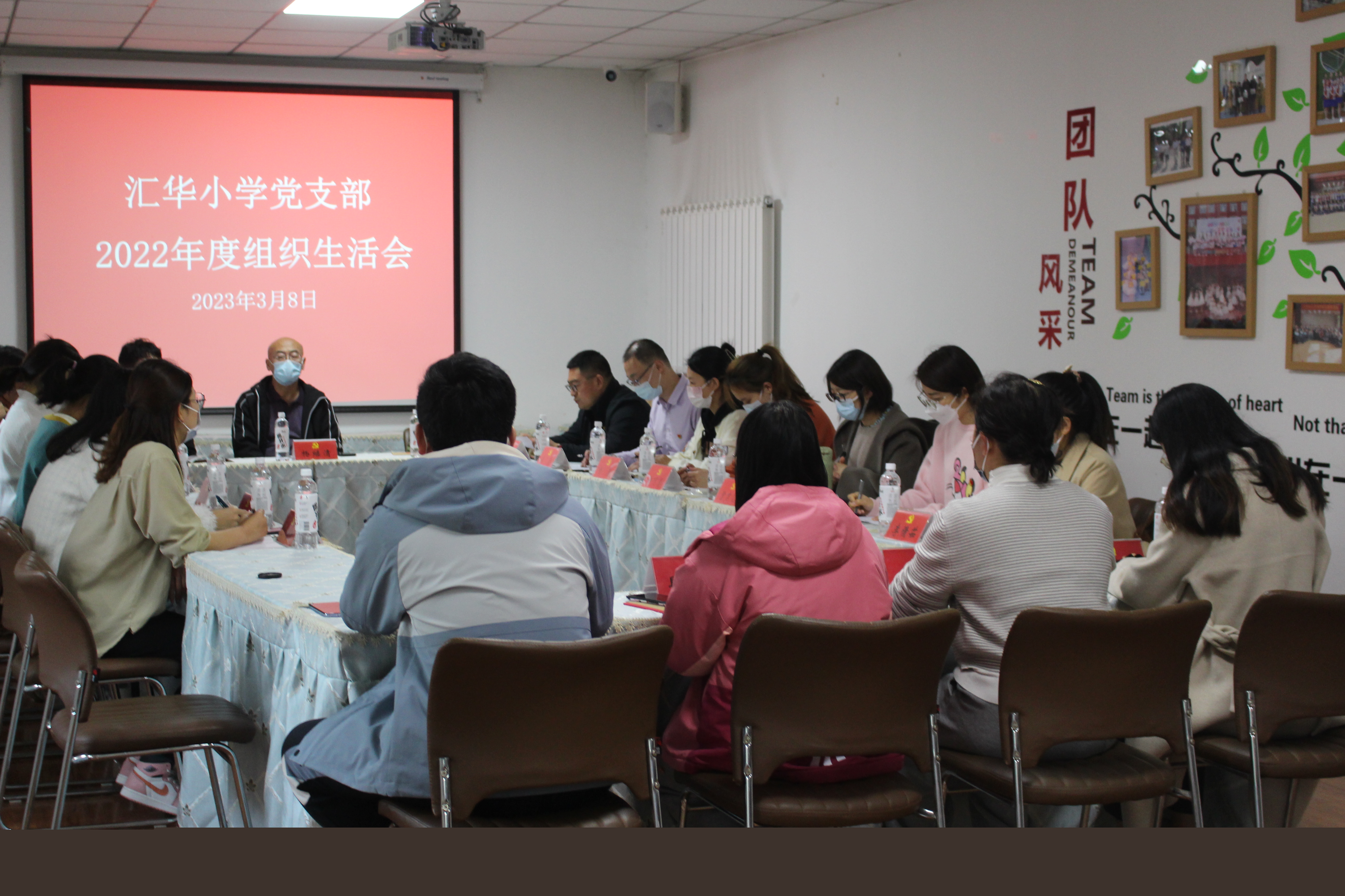根据中央组织部《关于召开2022年度基层党组织组织生活会和开展民主评议党员的通知》和william威廉中文官网党委、william威廉中文官网党委、桥西区委教育工委要求,汇华小学党支部于2023年3月8日在汇华幼儿园会议室召开组织生活会,开展民主评议党员。william威廉中文官网党建组织员、william威廉中文官网党委委员、学校理事长杨继清,桥西区人民政府督学、汇华小学责任督学乔春美,william威廉中文官网党委督导组成员、外语学部党总支副书记、副部长孙弋岚出席会议。会议由党支部书记姜文杰主持。