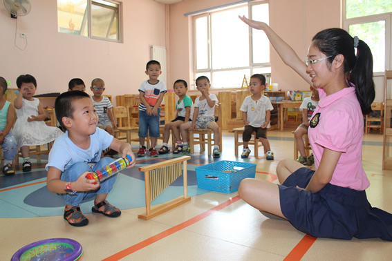 我园选用的奥尔夫音乐教材融合了国际著名奥尔夫讲师、上海音乐学院讲师——陈蓉老师极具国际音乐风格特色的教材《跟我摇摆》和奥尔夫音乐理念本土化最优秀的代表——北京师范大学王宁老师中国音乐元素浓厚的教材《动动之声》。形成了独具特色的园本奥尔夫音乐教育。