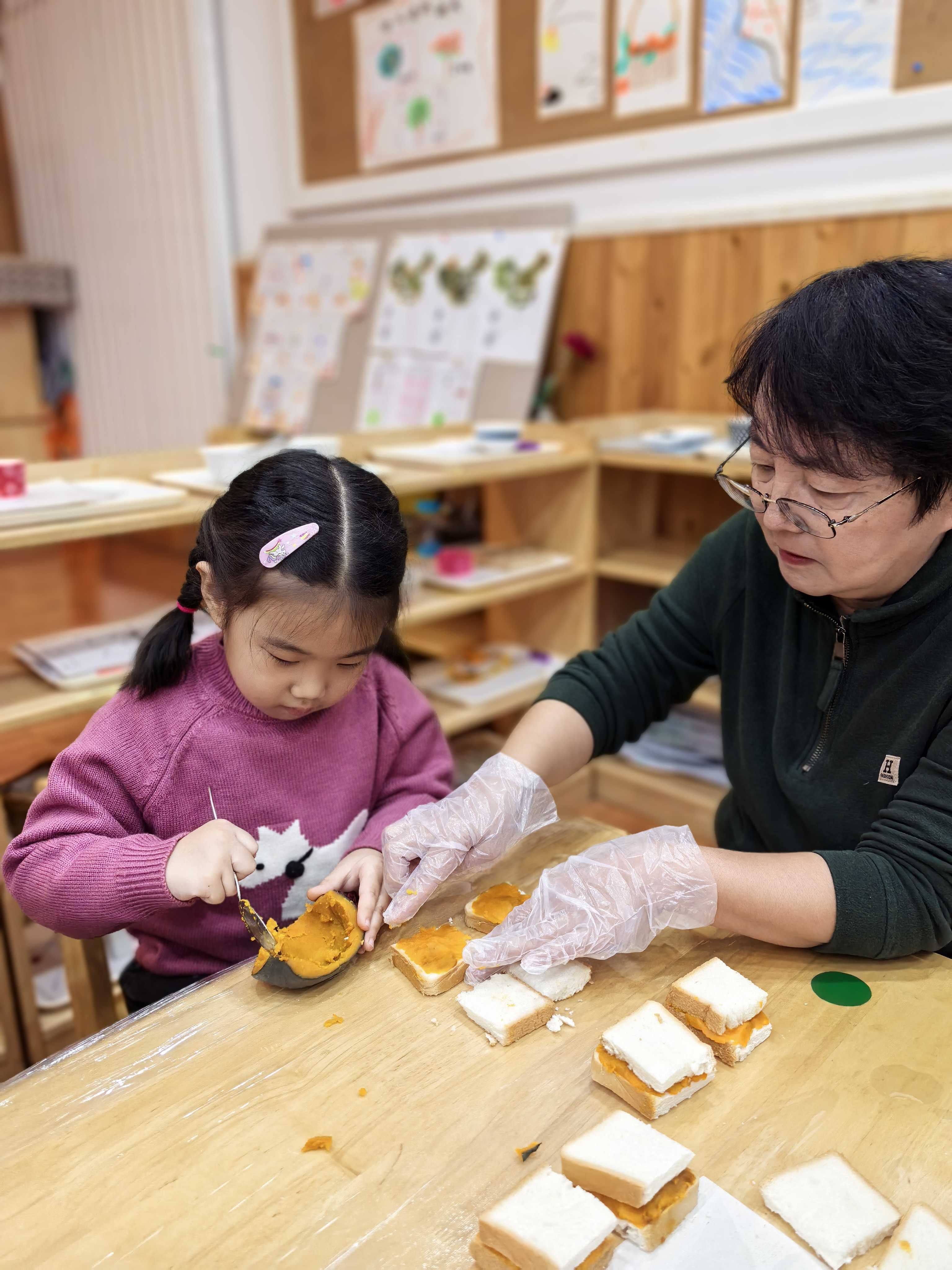 孩子和祖辈们齐坐一堂,洗净小手,和爷爷奶奶、外公外婆一起动手,揉面团、压博饼、手撕白菜、清洗山楂,孩子们笨拙却认真的动作,以及祖辈们脸上洋溢的幸福笑容,构成了一幅幅动人的画面。当一个个充满爱意的美食新鲜出炉时,孩子们亲手将这份甜蜜的“劳动成果”捧到长辈面前,用稚嫩的声音说:“爷爷奶奶,您辛苦了,请吃糕!”这一刻,浓浓的孝心在美食的香气中流淌。