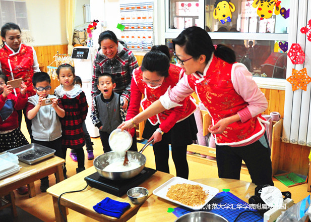 感受民俗,品味文化,为了迎接2018年新年的到来,让幼儿感受中国传统民族及饮食文化,同时增进幼儿与家长之间的亲子关系,体验亲子合作的快乐,促进家园和谐,汇华幼儿园特举办了此次"中国风·味·情元旦亲子游园会”。