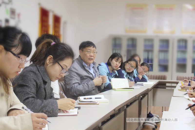 老师组织活动过程中,林教授认真记录,活动结束后,一一解答老师遇到的困惑,帮助老师找到问题的根源,并给出具体建议。林教授还亲自带领孩子们进行教学示范,如何把教学活动回归生活,如何让孩子自主探索,而最终受益的还是我们的孩子。示范活动结束后,林教授带领我园教师及各参观园所教师组成教研团队,就“自然心·教育爱”教育理念、教学方法进行深入讨论,老师们畅所欲言,收获颇多。