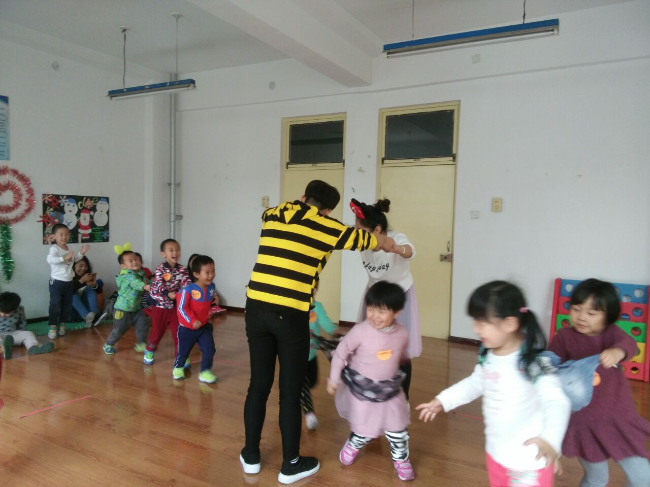 语言表演课上,孩子们和老师配合默契,课堂氛围轻松活泼。第一次课以“我们都是好朋友”为主题,老师和孩子们都进行自我介绍,老师通过木偶朋友“小光头”来带动孩子们的积极性,加强彼此熟悉。之后学习了小蜜蜂,小花猫,小白兔和小象弟弟等小动物的童谣,通过朗读、诵唱童谣,让孩子感受明快的节奏、真挚的情感,激起对童谣的兴趣和对动物的热爱。进一步帮助孩子积累语言,并逐步提高运用语言的能力。随后小朋友们一起模仿小动物,活泼生动,十分有趣。最后,老师带领小朋友们一起做游戏,过山洞和老狼来了,通过这两个游戏,孩子们得到彻底的放松,教室里充满了欢声笑语。课程的八次课将运用趣味儿歌、简单的绕口令、简短的寓言、故事,手指操等多动方式,在肢体动作的模仿表演与夸张的语言表演中,提升孩子的学习兴趣与热情,给予孩子正确规范的语言表演环境与艺术审美熏陶。