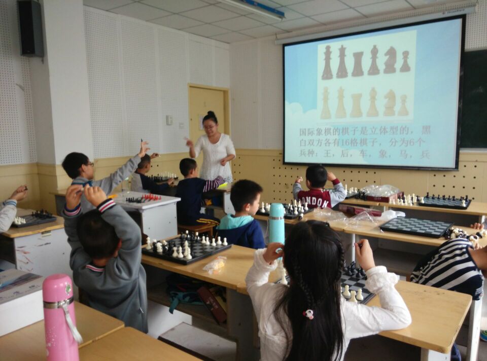国际象棋课让孩子在玩中学、乐中学,通过对国际象棋校本课程的探索与研究,在课堂中采用游戏法、讲授法、练习法、竞赛法等基本教学方法。针对国际象棋对初学者来说是有一定难度,遵循"以游戏为基本活动"的原则,通过游戏"小马吃草"、"小象运木"等帮助孩子掌握棋子的名称及形状;除游戏法外,考虑到孩子的年龄特点,自编一些通俗易懂、朗朗上口,又便于理解和记忆的儿歌、口诀,使孩子学得容易,记得牢固;为孩子创设一些具有趣味性的游戏项目,来进一步激发学习国际象棋的兴趣,发挥国际象棋的启迪智慧、陶冶情操、益智减负和趣味化功能,传播国际象棋的快乐,提高孩子独立解决问题的思维能力、操作能力以及意志品质。