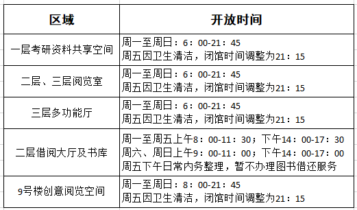 说明:节假日根据学院规定开放。其他临时通知,请关注馆内信息。