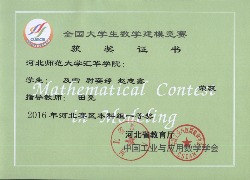 数学与应用数学专业高度重视人才培养质量,教学管理严格,在强化专业培养的同时,注重学生综合素质的全面发展,学生在全国大学生数学竞赛、全国大学生数学建模竞赛、河北省大学生数学竞赛等专业赛事中均获得优异成绩。