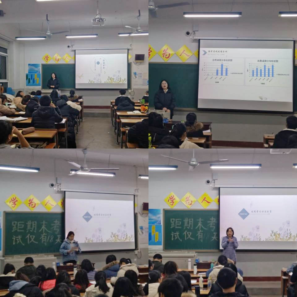 活动伊始,赵禧玉将期中考试各科成绩以小组、宿舍为单位总结为表格,使同学们更加直观地看到自己与优秀同学的距离以及自己应该努力的方向。随后,由各小组同学分享其优秀的学习方法,其中张朝晖表示,在高等数学的学习过程中应及时总结,及时将老师所讲的例题温习,勤问勤练,掌握正确的学习方法。程佳硕提出板块学习的方法,使知识脉络更加清晰。“定下目标,应战期末”展示环节,同学们写下自己的目标,目标就是动力,以此来督促自己刻苦复习,冲刺期末。在此次班会开展后,同学们纷纷表示学习积极性得到了提高,目标更加明确。
