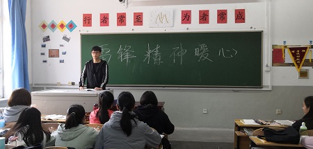 3月28日,为响应“向雷锋同志学习”的号召,同时为大力弘扬和践行社会主义核心价值观。2018级数学与应用数学一班在二教113教室以“雷锋精神暖心”为主题,开展主题班会,由组织委齐健主持。