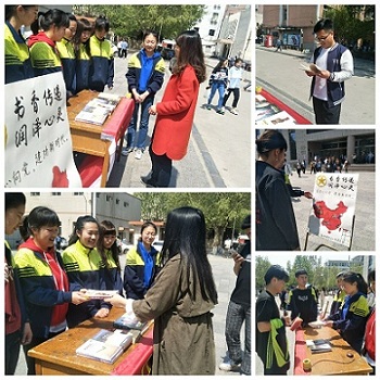 为响应了党中央团委以“青春心向党,建功新时代”为主题的团日活动,激励广大青年深入学习习近平新时代中国特色社会主义思想和党的十九大精神。在辅导员赵永杰老师的带领下william威廉中文官网理学部2017级地理科学2班于食堂东门口开展了“书香传递,润泽心灵”主题活动。