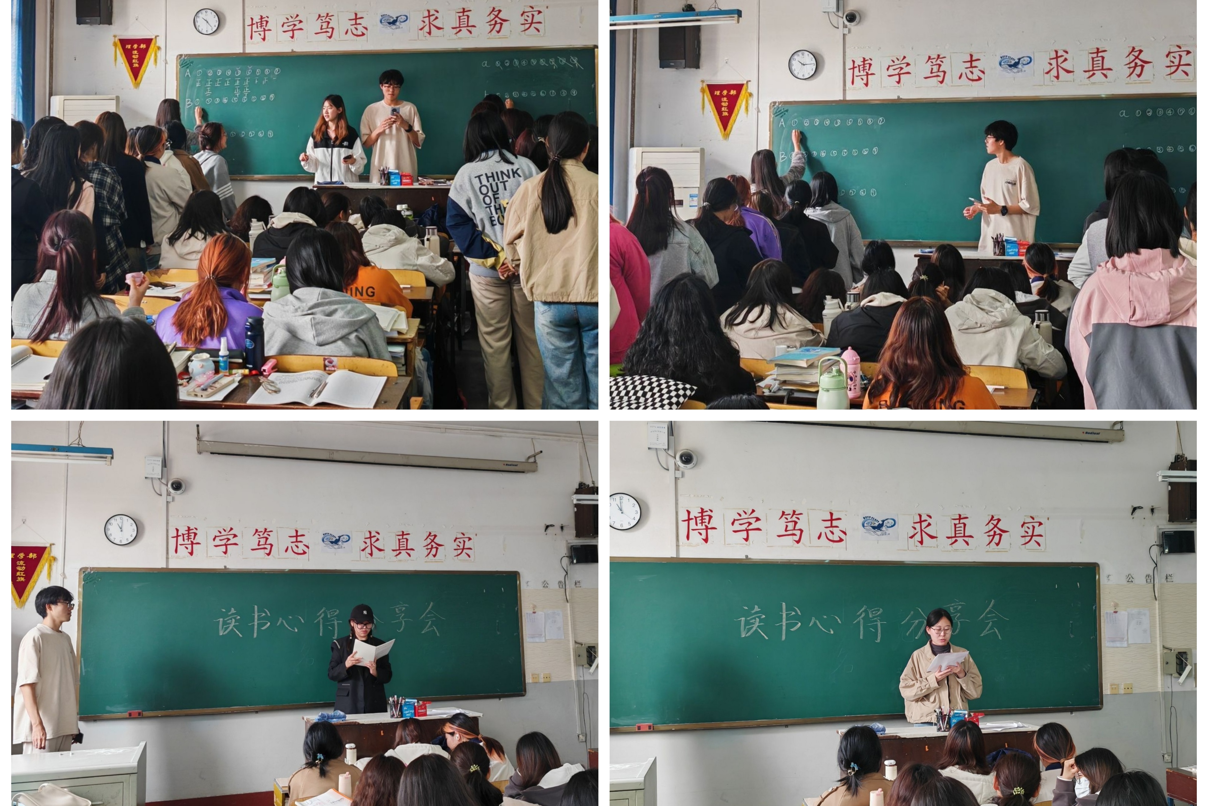 为了拓宽同学们的知识面,增强文化素养,提高思维敏捷性和竞争意识,促进同学们之间交流与分享,2023级生物科学2班于2024年4月10日在第二教学楼312教室举行了一场别开生面的读书活动。此次活动由班干部孙天依,褚宇主持开展,沈梦洁,曹慧,闫欣媛,霍姿伊四名同学做裁判,诚邀辅导员郭世超老师进行指导,全体同学参加了此次活动。 活动伊始,由主持人褚宇向同学们介绍了活动规则与奖项设置。随后,两个活动有条不紊的开始进行。书名竞答环节精彩纷呈,题目涵盖了各种类型的书籍。同学们积极参与,展现出丰富的阅读积累和敏捷的思维。读书分享环节更是将活动推向了高潮,同学们纷纷上台,分享自己最近阅读的书籍内容、感悟和收获。他们用生动的语言描绘书中的情节,让大家仿佛身临其境。在活动中,同学们不仅拓宽了知识面,还交流了读书心得,大家相互学习,共同进步。
