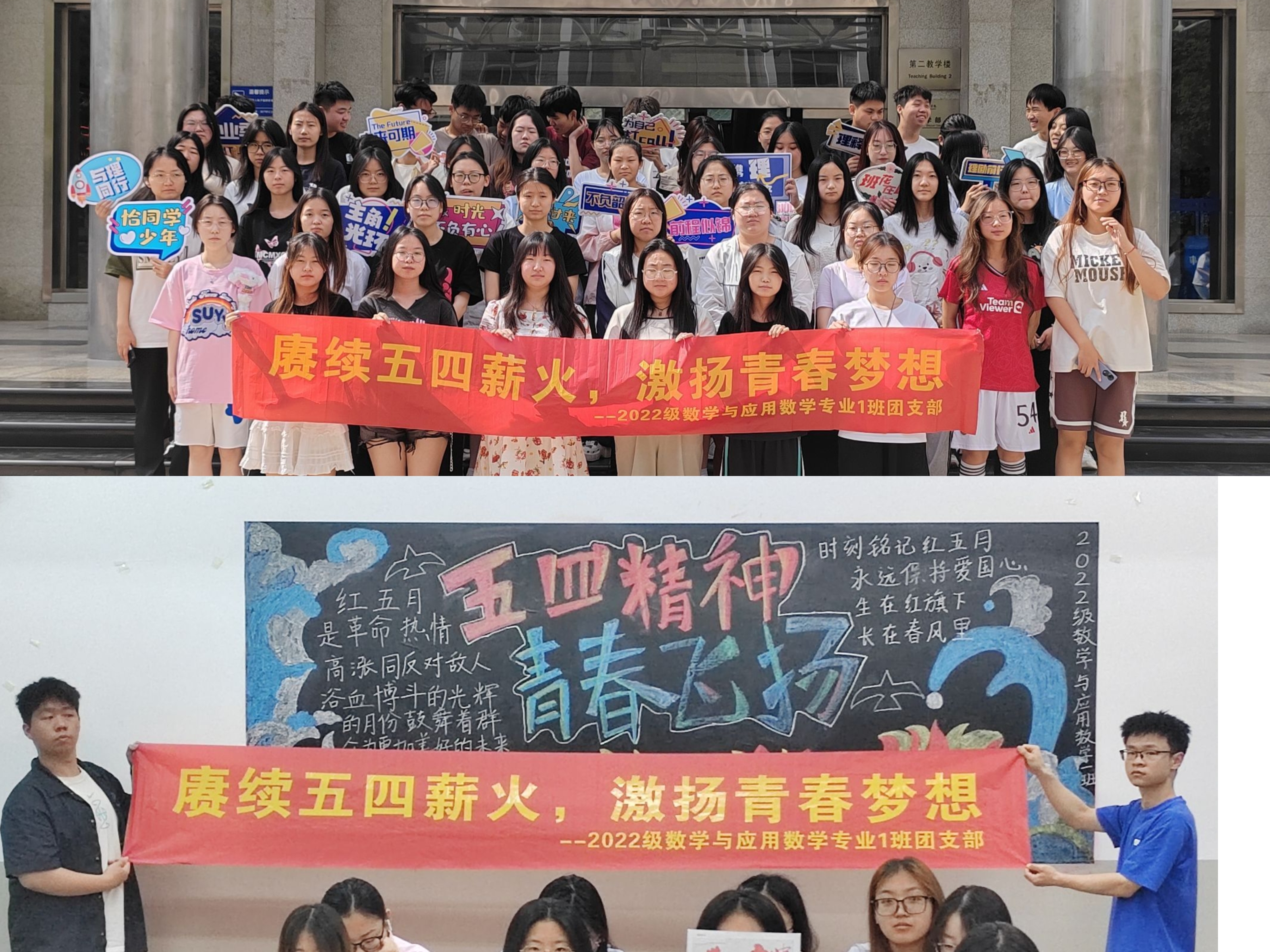为深入学习贯彻习近平新时代中国特色社会主义思想,全面贯彻落实党的二十大精神,2022级数学与应用数学1班团支部在五月份对团员青年组织开展“传承五四精神,凝聚奋进力量”的主题团日活动。 安全知识竞赛活动的开展分为个人必答和小组抢答两个环节。支部团员青年表现出了极高的热情和实力,通过竞赛,大家对安全知识有了更深入的了解和认识。同时也发现了一些同学在日常生活中存在的不安全行为,通过此次活动,大家都有了更多的警觉和反思,并且组织团员青年签写安全条幅以及绘制安全标志提高同学们安全意识。 五四红色黑板报,手抄报和钻石画活动也得到了青年团员们的积极参与和精彩呈现。每一幅作品都体现了同学们的创意和审美观,展示了团支部的文化和精神风貌。同时,通过这次活动,同学们也学会了如何进行团队合作,如何协调工作,这些都是今后工作和学习中需要具备的能力。