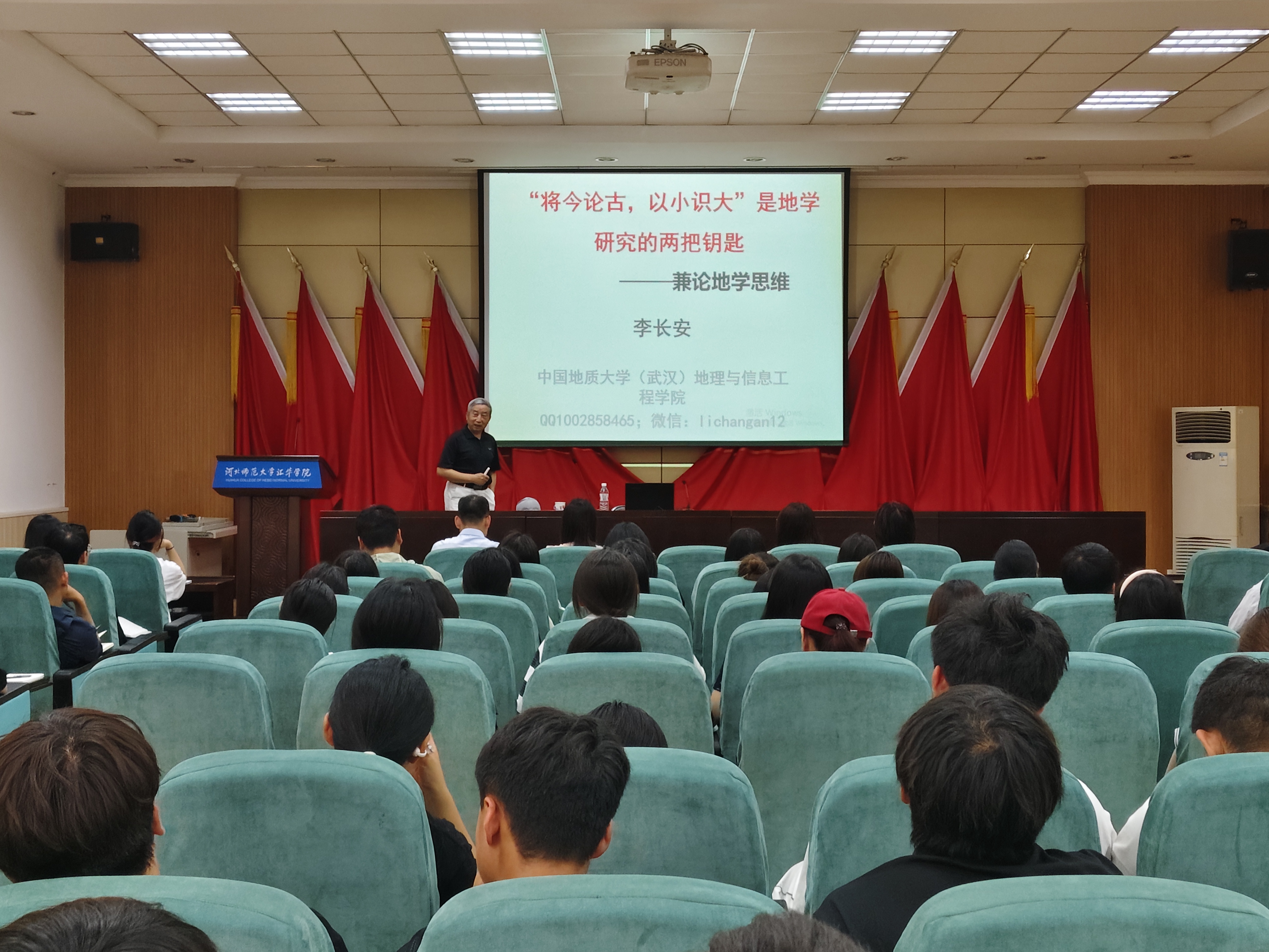5月27日,中国地质大学(武汉)地理与信息工程学院李长安教授应邀到william做客“汇华名家讲堂”,在图书馆一楼报告厅作题为“将今论古,以小识大—论地学思维”的学术报告。理学部部长张增水主持讲座,理学部地理科学专业120多名师生到场聆听。 李长安教授从教育的本质出发,围绕地貌专业知识,从科学的观察、科学的思维、科学的分析、小现象大道理四个方面,就如何发现问题、提出问题、解决问题,以达到提升能力、服务社会的目的。李教授的报告高屋建瓴,振聋发聩,引人深省,他的讲解深入浅出,乡音亲切,令学生们如沐春风。李教授还与在场的学生进行了热烈的互动,耐心解答了同学们提出的问题,进一步激发了学生们的学习热情,也增强了他们对地理科学的兴趣。