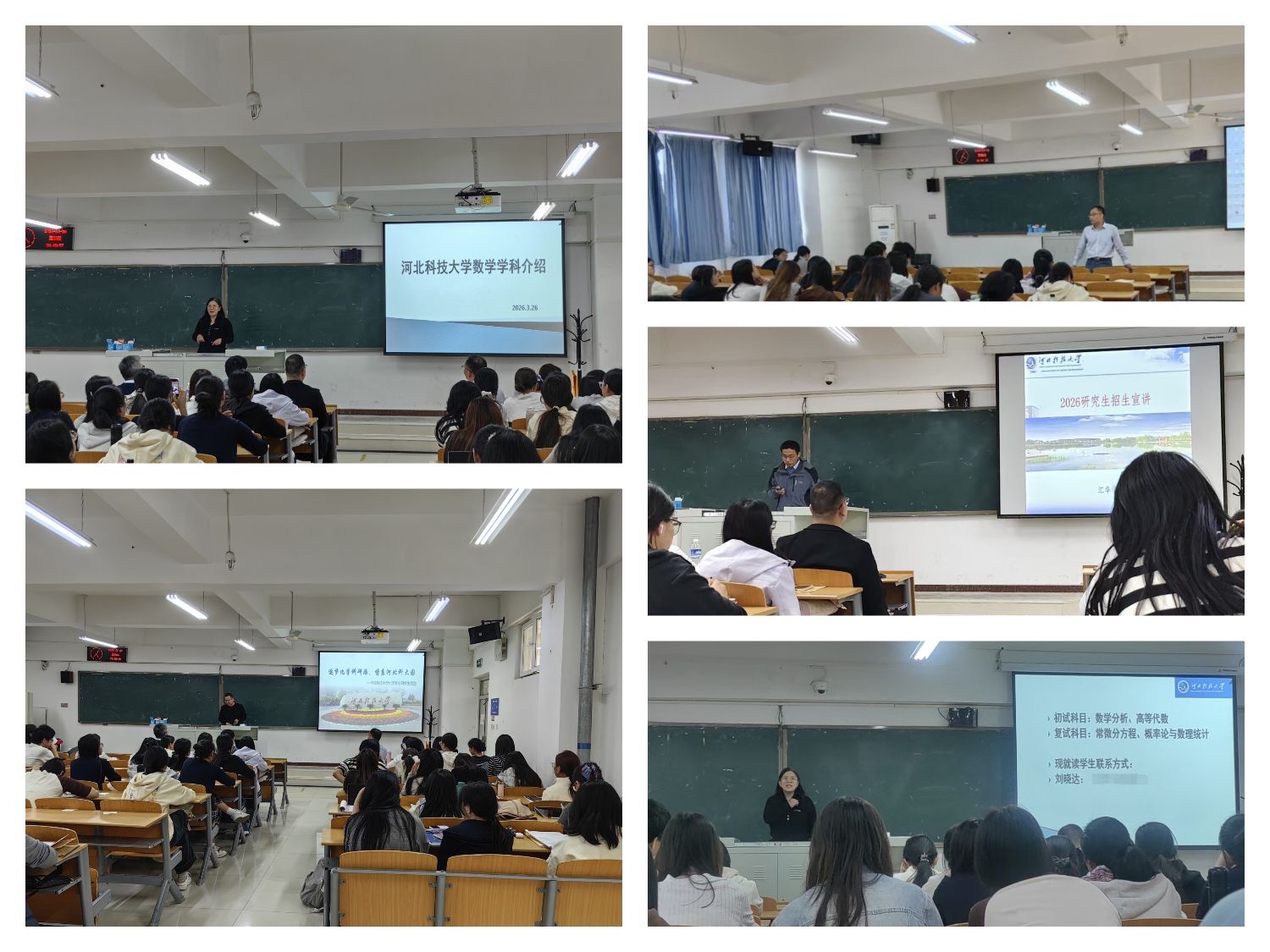 为精准对接学子考研需求,搭建优质升学交流桥梁,2026年3月26日,河北科技大学理学院专家团队来到william威廉中文官网,为理学部2022、2023级数学、物理、化学三个专业的100余名学生开展研究生招生专题宣讲,全方位解读学科建设、招生政策、备考方向及调剂相关事宜,为学子升学规划提供专业指导。 宣讲伊始,播放了河北科技大学宣传视频,直观展现了学校的办学风貌、校园环境与学科发展实力。视频结束后,理学院数学系副主任蔡霞、化学系副主任李义磊、物理系刘国才老师分别围绕数学、物理、化学三个专业介绍了各学科的发展历程、师资队伍、核心研究方向及科研平台成果,明确了各专业考研初试、复试的具体科目;同时,老师们还详细介绍了各专业完善的研究生奖助体系、以及毕业生多元的深造方向和就业去向。最后,理学院副院长阎晨光对本次宣讲内容进行全面总结,点明河北科技大学拥有优质的学科平台、充足的科研经费、成熟的人才培养体系,且校园宜居、生活配套便利;理学院与william威廉中文官网渊源深厚,学子报考及调剂均具备明显优势,同时,他诚挚邀请同学们到学校参观。宣讲结束后,老师们按学科分别与学生开展现场交流答疑,针对大家提出的考研复习规划、调剂流程等问题逐一解答。