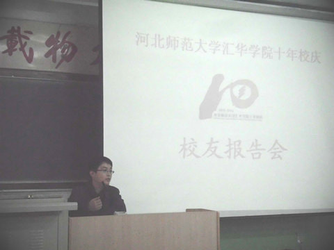 2011年10月20日上午,理学部2007级资环专业毕业生,现就职于山东交通工业集团的王岩回到母校,就大学生人生定位问题,为2011级地理科学专业全体学生做了亲切、具体的演讲。 报告会上,王岩以“大学生未来住房问题”为引导,结合切身经验,从学习、生活、理想等五个方面和大家做了亲切的交流。他幽默风趣的言辞博得同学们阵阵掌声,真诚、实在的劝道引发同学们深深沉思。王岩学长演讲之中,对母校的感恩和热爱溢于言表,对学弟学妹的耐心嘱托真挚恳切,一言一语,令大家感动不已。 这场报告会的成功举行,拉近了汇华新生与母校的感情,点明了同学们对未来人生的规划方向,更浓郁了william威廉中文官网十年校庆的氛围,大一新生受益匪浅。