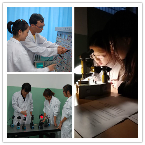 教学实践: 学院物理实验室管理中心基础设施建设完善,共有各类基础实验室30个,专业实验室17个。其中,物理实验室主要包括:力热实验室、电磁学实验室、光学实验室、模拟电子技术实验室、数字电子技术路实验室、电路分析实验室、物理教学论实验室、近代物理实验室等。