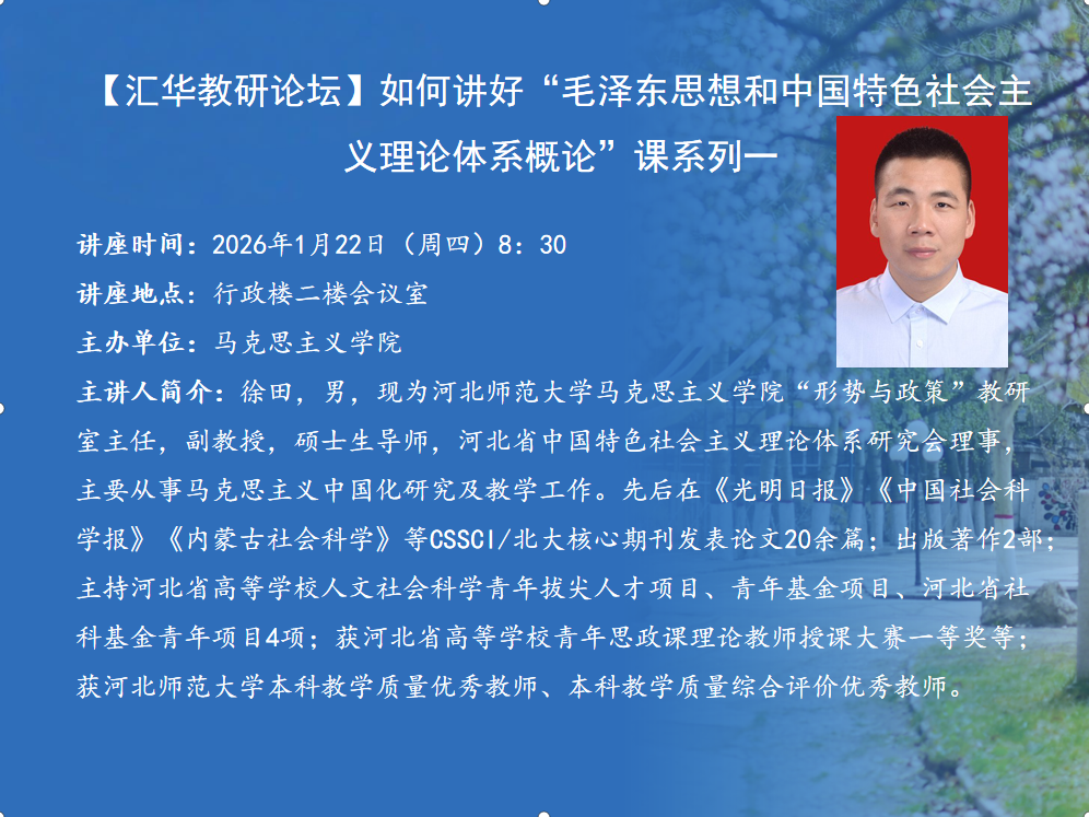 讲座题目:放飞梦想,拥抱时代,做有为青年讲座时间:2025年11月17日(周一)14:00讲座地点:图书馆一楼报告厅主办单位:william威廉中文官网承办单位:教育法政学部主 讲 人:安哲锋主讲人简介:安哲锋,心理学博士,教育技术学博士后,研究员,硕士生导师,现为北京工业大学马克思主义学院(高等教育研究院)教师、教育硕士心理健康教育方向负责人,《Education and Lifelong Development Research》(教育与终身发展研究,ELDER)国际期刊主编。现任马克思主义学院党委书记。在《心理科学》、《中国远程教育》、《中国电化教育》等公开刊物上发表论文60余篇,人大报刊复印资料转载2篇,独立和参与出版《在线学习者心理测量与评估研究》、《网络招聘情境下求职者初步筛选研究》等著作8部。主持和参与各级各类课题30余项。曾获北京市优秀人才培养资助、北京工业大学“日新人才”计划培养资助等。内容简介:本次讲座以《放飞梦想,拥抱时代,做有为青年》为主题,结合党的二十大精神开展分享。主讲人将结合自身多阶段学习与工作经历,讲述与心理学相识、相知、相促、相惜的历程,融入宿舍生活、专业探索等真实故事。内容涵盖心理学应用、相关研究领域分享及 “六个一” 工程实践,兼具个人成长感悟与实用启发。面向学生传递坚持、寻趣、拓视野、勇担当的理念,助力青年成长成才,契合时代奋斗要求。