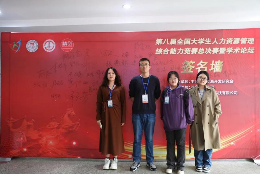 11月11日至12日,第八届全国大学生人力资源管理综合能力竞赛总决赛在西南民族大学举行。来自中南财经政法大学、苏州大学、河南大学等全国76个院校的队伍参加了比赛,代表william参赛的人力资源管理专业张静雯等3名同学组成的队伍经过两天的比赛,最终取得了本科组三等奖。