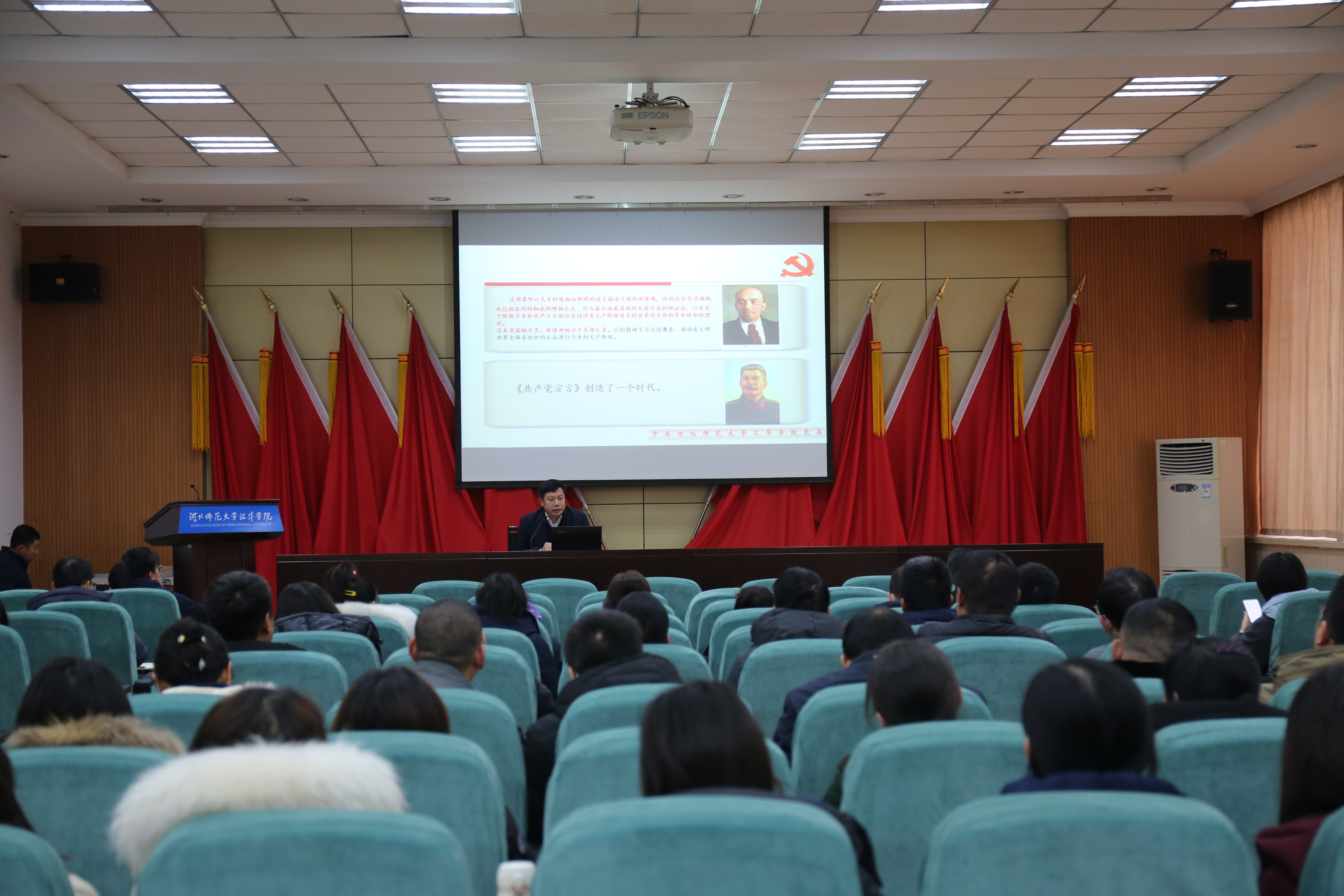 杨富兴以《<共产党宣言>导读》为题,介绍了《共产党宣言》的写作背景和历史地位,带领党员教师重温了《共产党宣言》的诞生过程。杨书记从“一个引言、四章正文、七篇序言”出发,阐述了《共产党宣言》的文本结构和基本思想。他还结合高校工作实际,论述了《共产党宣言》对高校思想政治教育工作的重要理论意义与实践价值以及对新时代大学生的育人价值。最后,他号召全体教工党员要做坚定的马克思主义信仰者、做坚定的马克思主义学习者、做坚定的马克思主义传播者、做坚定的马克思主义实践者。