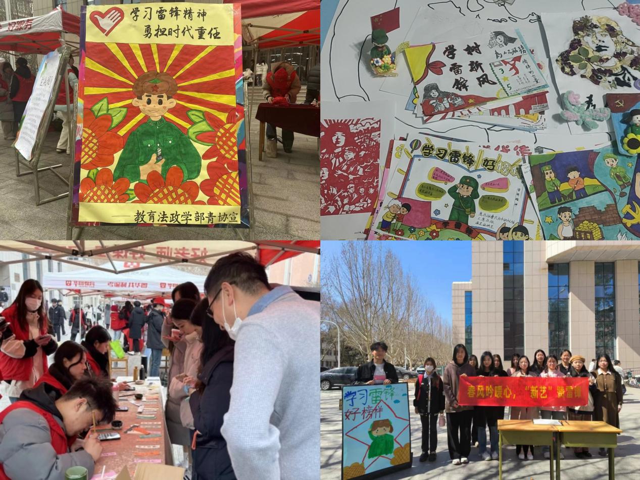 匠心独运,新艺绘英,展现雷锋时代风采, “新艺”赞雷锋活动如约而至。全院师生开展以“春风吟暖心,‘新艺’赞雷锋”为主题的“雷锋系列艺术作品创作”活动,通过绘画等方式,创作一系列与雷锋有关的艺术作品。艺术学部青年志愿者协会组织举行“学雷锋写书签”,宣传雷锋精神。理学部青年志愿者协会组织“锋”影留心,观看《雷锋1959》;教育法政学部青年志愿者协会制作宣传海报,宣讲雷锋精神。