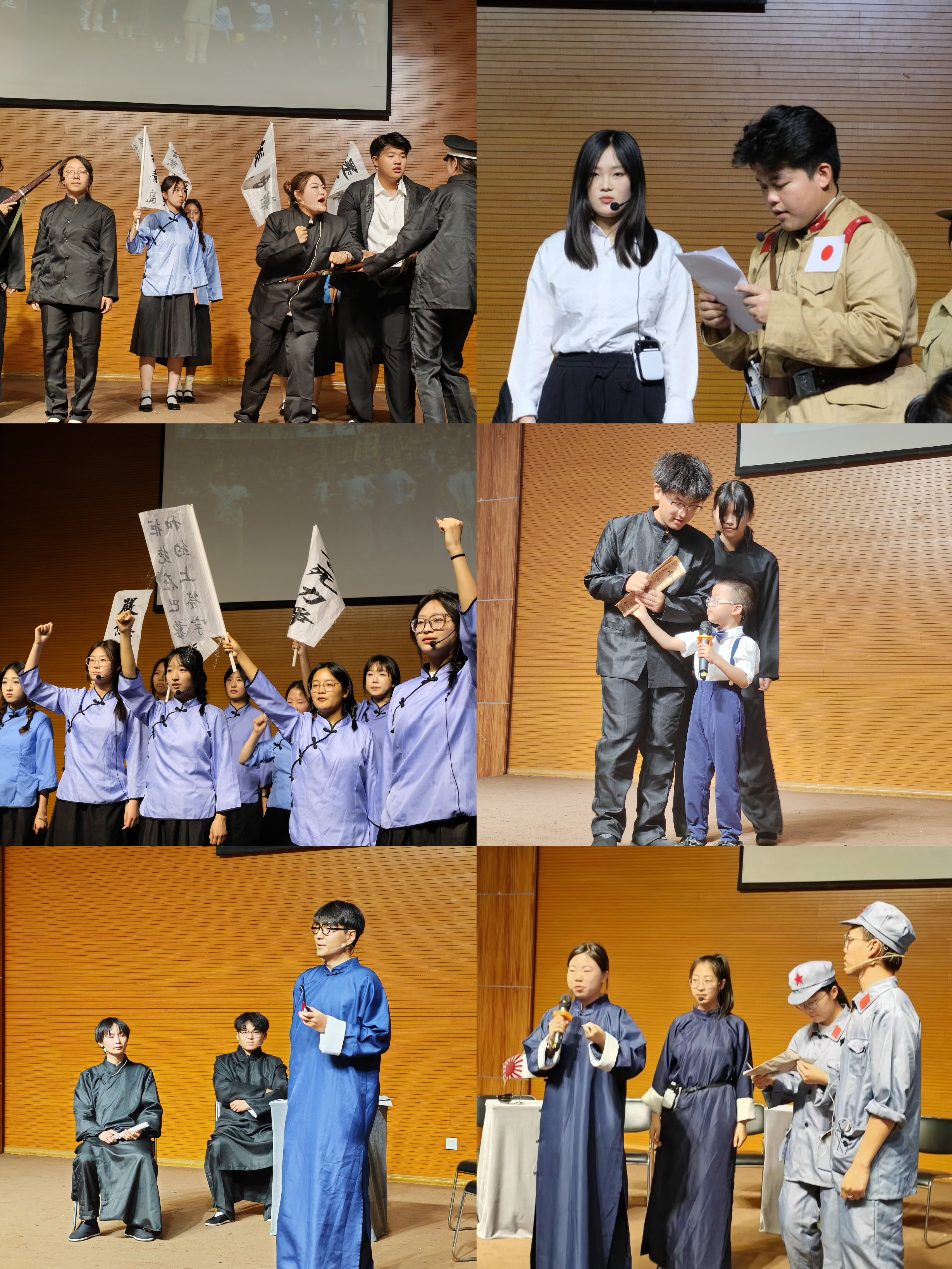 外语历史剧展演自2018年开展,是william思政课教学改革的创新实践,旨在通过艺术的表现形式,深入挖掘和传承红色文化与革命精神。2023级英语、日语、俄语专业学生借助历史剧这一艺术形式,用多种语言,生动再现了中国近现代史上一系列关键事件。日语专业学生通过《青年领袖在日本的思想启迪》揭示了革命先驱在海外求学时的心路历程;英语专业学生通过《巴黎和会》、《五四运动》、《红船与中国共产党的诞生》、《中共七大与抗日战争胜利》等剧目,展现了从国际政治较量到国内爱国运动,再到党的重要会议和胜利时刻的壮阔图景;俄语专业则通过《八月风暴》彰显了中华民族在抵抗外侵中的英勇与团结。同学们的倾情演绎体现了当代大学生牢记历史、赓续红色血脉的时代担当。