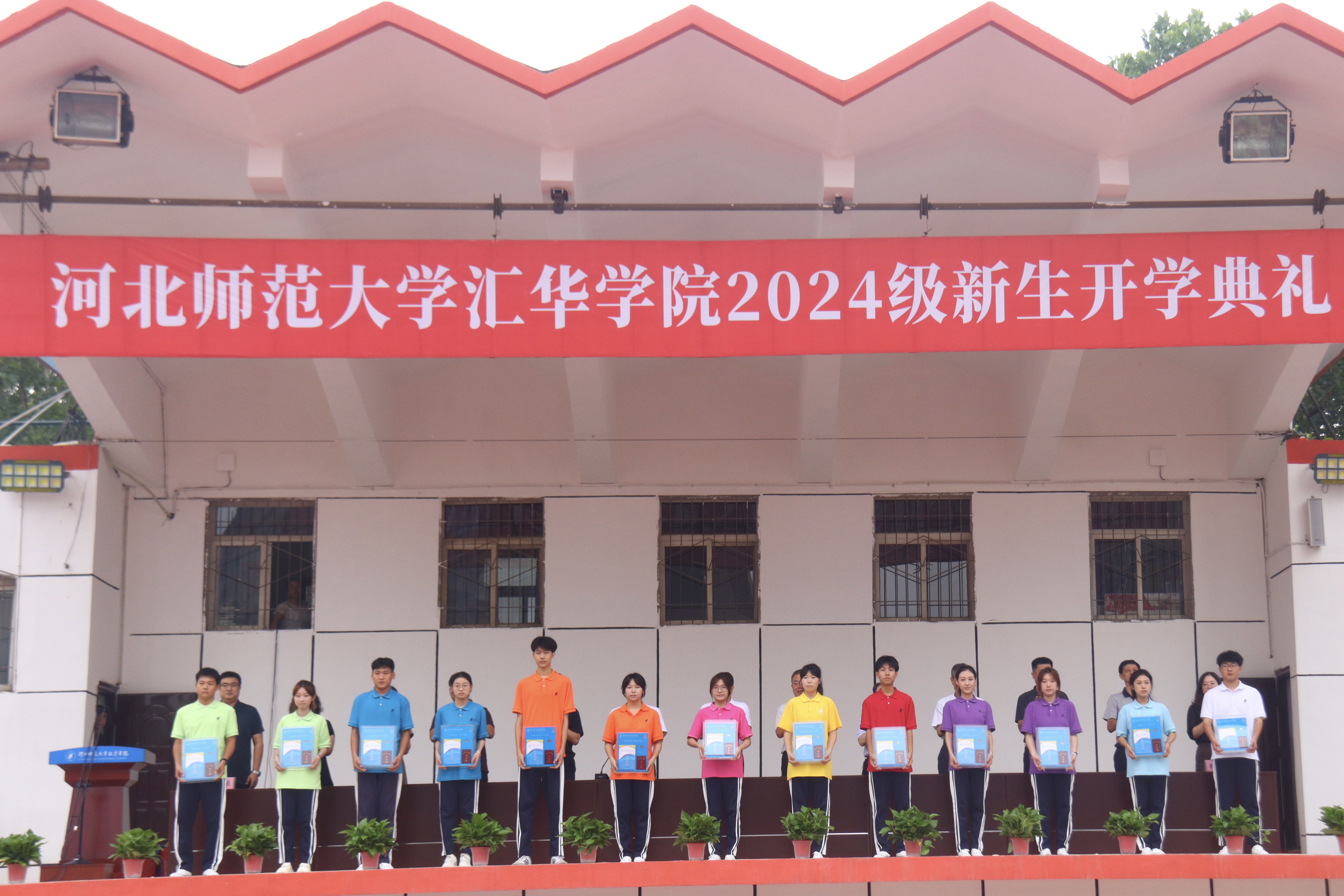 在开学典礼上,与会领导、嘉宾为新生代表颁发了校徽和学生证,2024级新生正式加入了汇华大家庭。