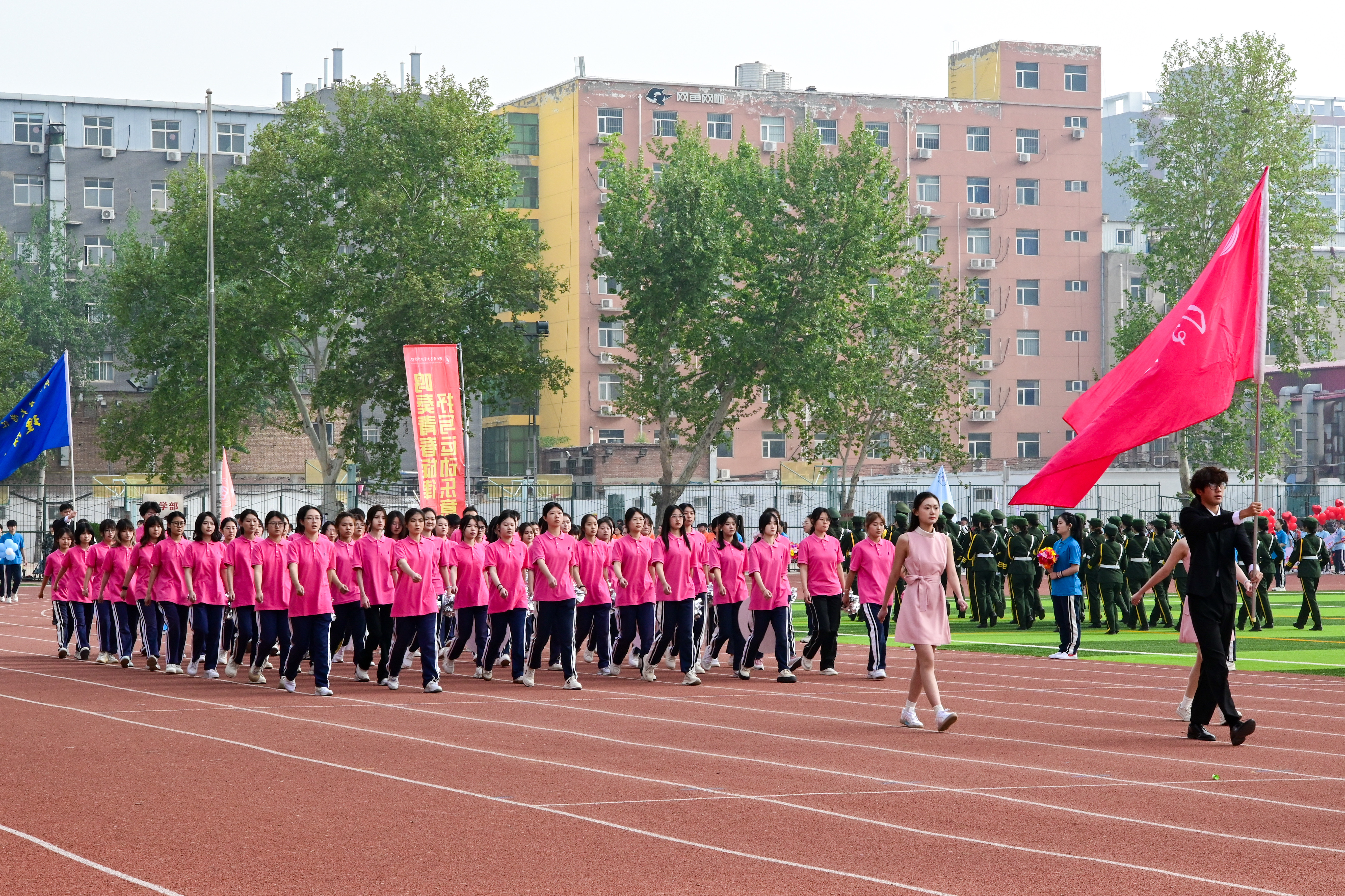 伴随着昂扬的进行曲,各方队依次入场,步伐整齐、口号嘹亮,呈现出当代青年的激情与生机,展示了汇华师生的活力与朝气。