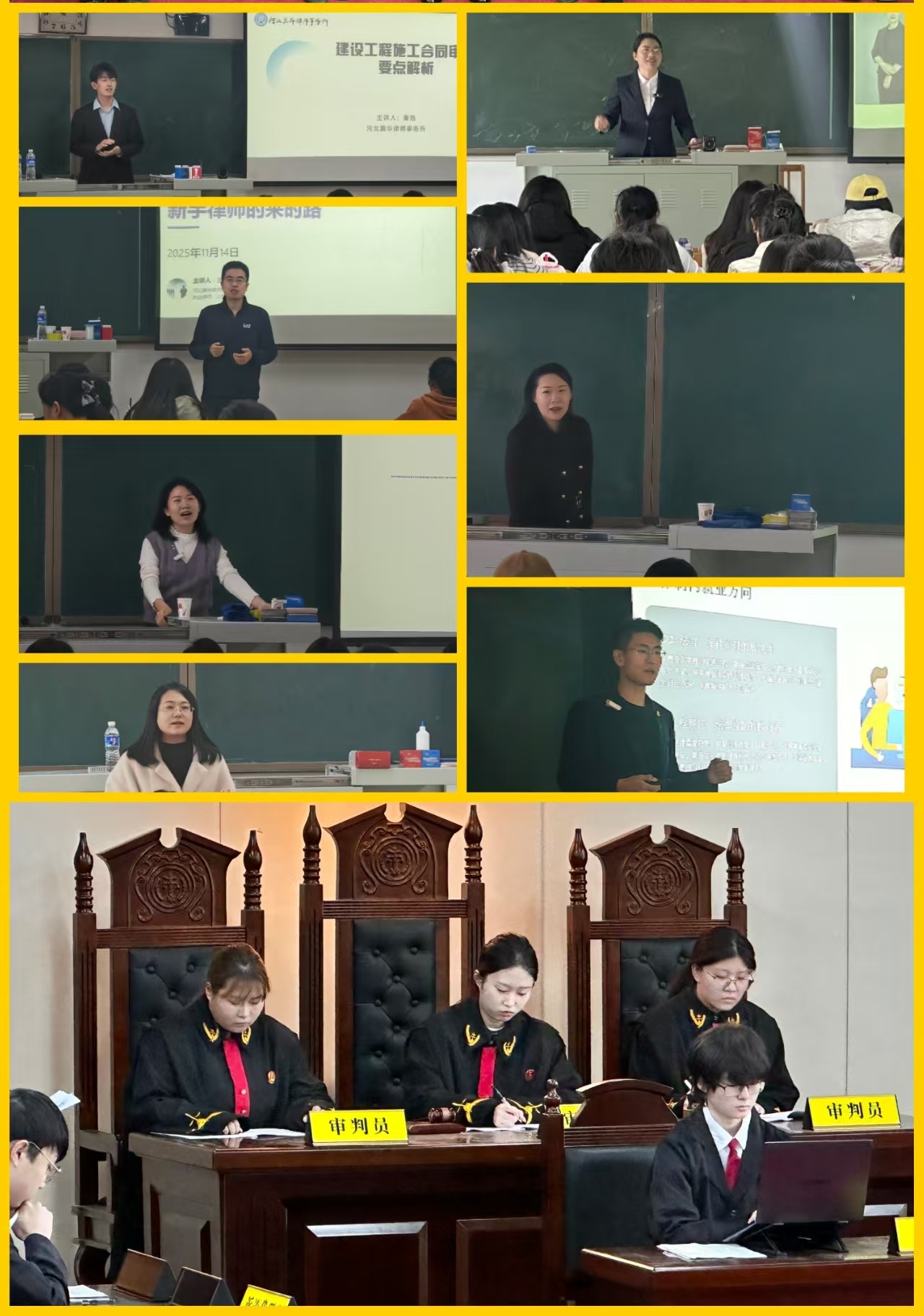 2025年10月至12月,法政学部与河北冀华律师事务所持续深化合作,成功举办第二期“双师同育,赋能增长”律师进课堂系列活动。本学期,学部以构建《典型实务案例分析》特色课程为核心,系统整合“专题讲座+模拟法庭”立体化教学模式,全面覆盖法律实务关键领域与行业前沿,组织2023级法学专业学生全程参与,有效促进了法学理论与实务能力的有机融合,标志着学部在实践教学体系化建设方面迈出坚实步伐。