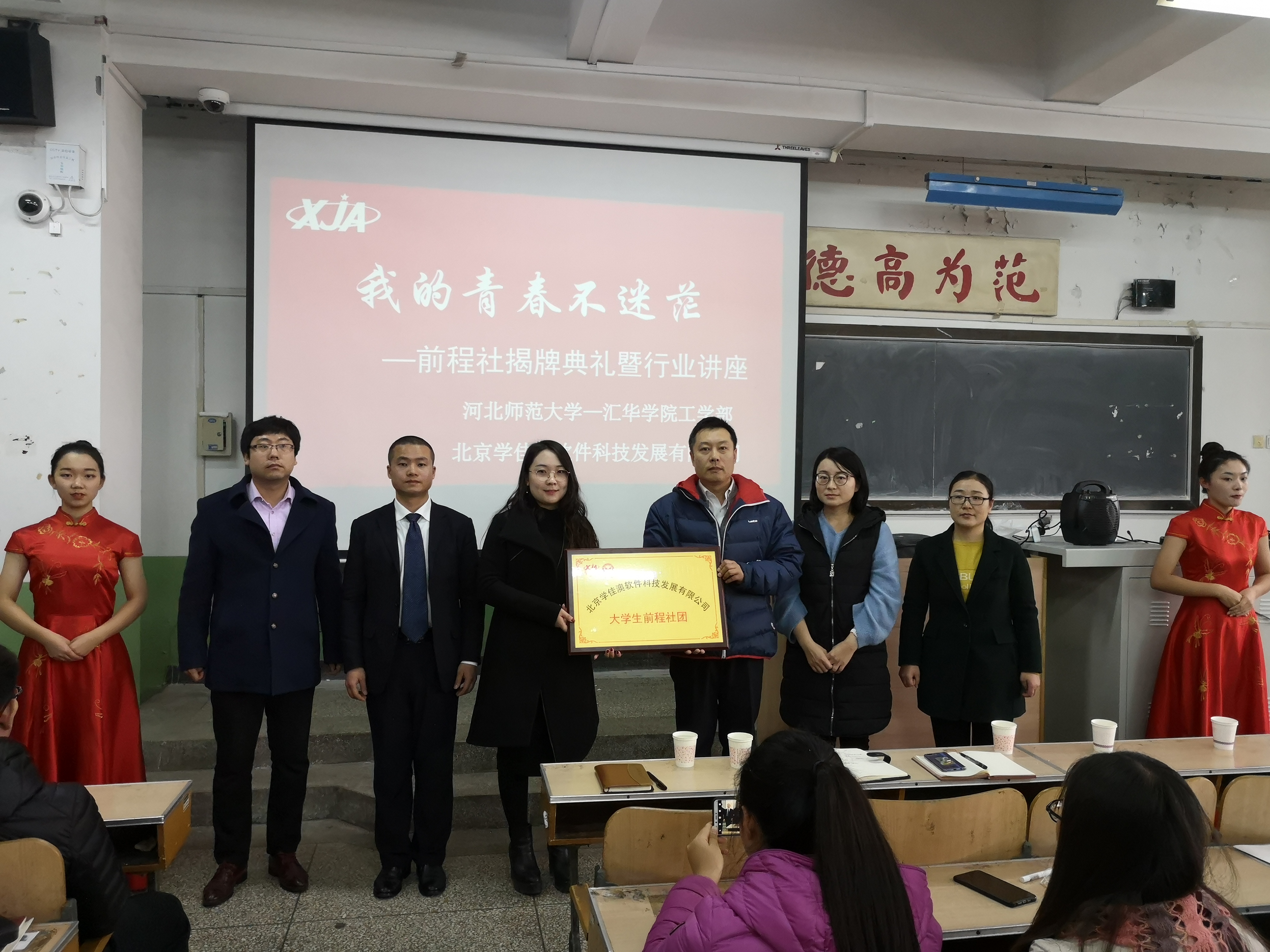 为给学生提供更多实习、实训、就业的空间,更好地为社会和企业培养高素质、高技能的应用型人才,工学部与北京学佳澳教育集团进一步加强校企合作——共建公益性学习社团。12月20日下午在第一教学楼312教室举行了“工学部学佳澳前程社团”揭牌典礼,学佳澳项目区域总监、社团负责人吴睿,中国移动通信联合会、大数据人工智能创新应用产业研究院高级顾问吴松,工学部学生工作副部长王峰,工学部团总支书记李晓超,工学部专任教师边玲、霍利玲出席了典礼。