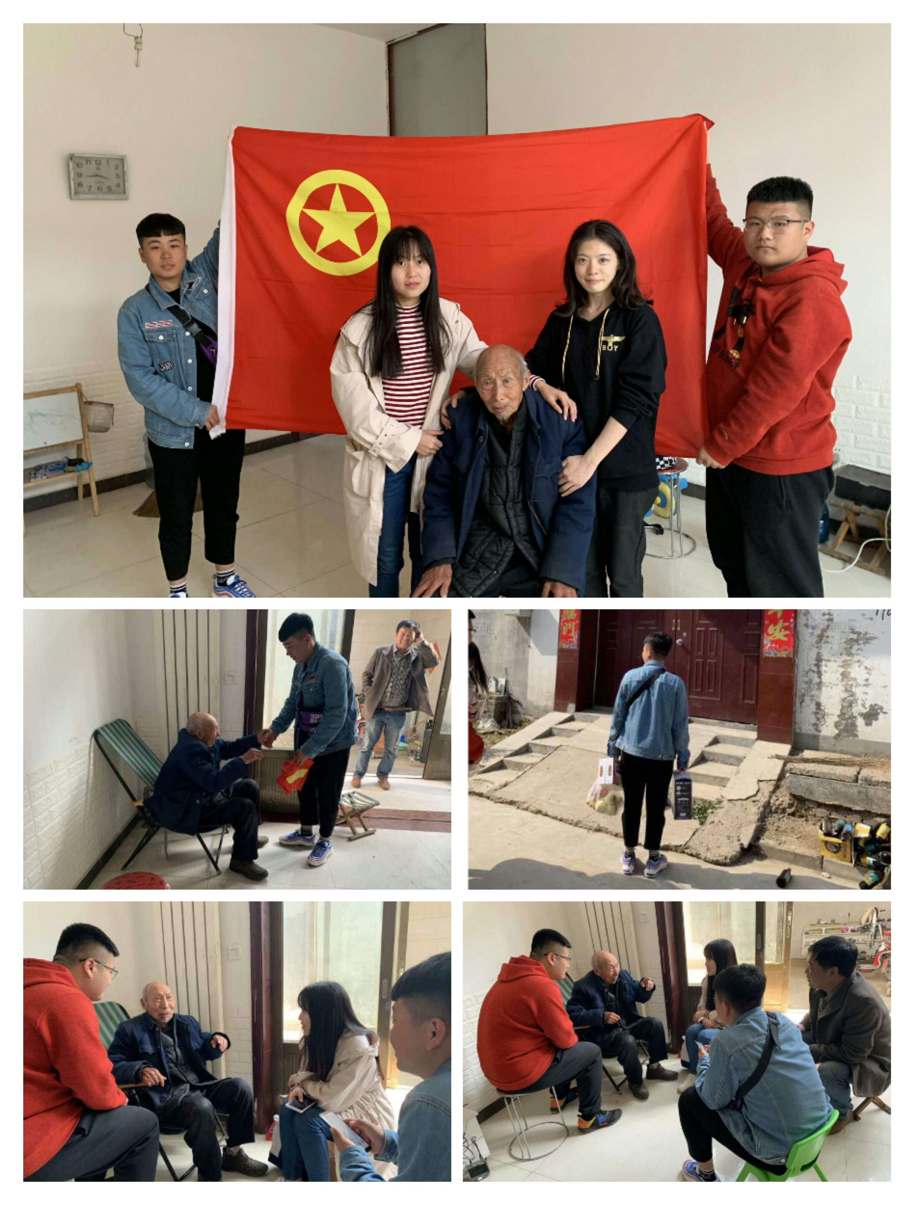 为响应学部团总支开展“青春心向党,建功新时代”主题团日活动的号召,2018级计算机科学与技术1班团支部筹划了 “致敬峥嵘岁月,重温革命情”系列主题活动,并于2019年4月15日下午以四名学生为代表拜访了家住石家庄市鹿泉区永壁村的93岁革命英雄周柱海。