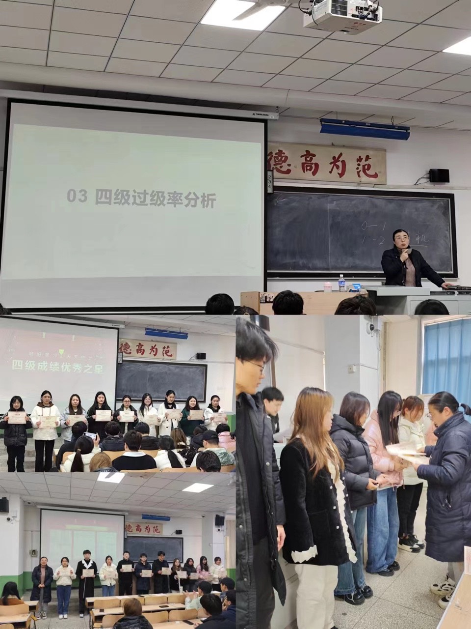 “适千里者,三月聚粮”,经过一年多英语四级的学习,此刻变得更加有意义。大会鼓励了寒假作业优秀的学生、宿舍集体,奖励了英语四级首次通过的学生。2022级计算机科学与技术英语四级首次通过率为:2班40%,1班26.35%,3班26%。这不仅反映出前一阶段准备、冲刺时的成效,更为后一阶段各方面的学习提供了良好的示范作用。“有志者,事竟成”,2022级计算机科学与技术专业以赛促学活动将持续开展,入学以来部分同学抓住机会,认真备赛取得了优异的成绩。本学期班级将进一步深化以赛促学活动,激励学生以更积极的态度参与进来,做到敢想、敢学、敢拼,不怕暂时的困难,保持学习的热情,从而做到学有所获、学有所乐。