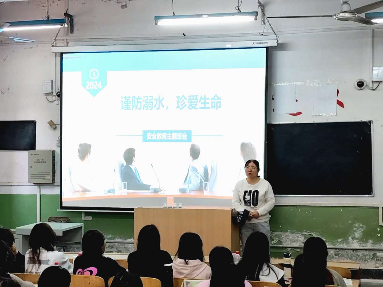 辅导员张洁展示了我国近期发生的溺水案例,通过沉痛的教训,告诉学生谨记不去陌生水域附近。随后向同学们详细阐述了溺水的成因、预防措施以及遇到溺水情况时的自救和互救方法。特别强调,在游泳时要选择安全的游泳场所,遵守游泳规则,不私自下水,不擅自与他人结伴游泳,不到不熟悉的水域游泳,不熟悉水性的学生不擅自下水施救等。最后,张洁总结了班会的主要内容,并再次强调了防溺水安全的重要性,希望同学们牢记安全第一、珍爱生命,远离溺水危险。同时,她也鼓励同学们将所学的防溺水知识传递给家人和朋友,让更多的人了解并重视防溺水安全。