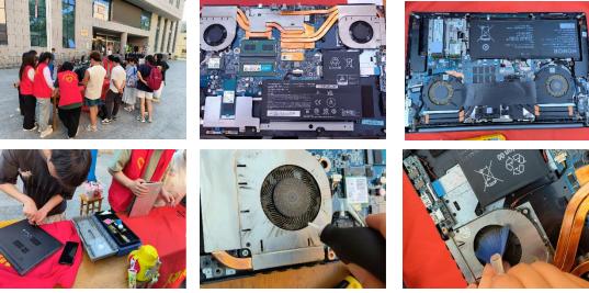 活动当日,食堂东广场人头攒动,气氛热烈。来自工学部电脑小分队的志愿者们早早地来到现场,他们身着统一的志愿者服装,手持专业的清灰工具,准备为师生们提供优质的电脑清灰服务。活动现场,志愿者按照事先的分组,有条不紊地开展工作。他们一方面耐心细致地为师生们的电脑进行拆解,清理风扇、散热片等关键部位的灰尘,重新安装程序等,另一方面从软件和日常操作方面为大家讲解电脑维护的基本知识,确保每一台电脑都焕然一新。